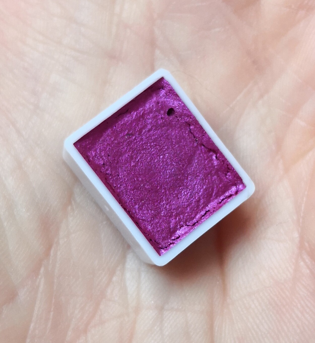 Die Aquarellfarbe ist ein spannender Micafarbton, den ich irgendwo um Magenta herum einordnen würde: