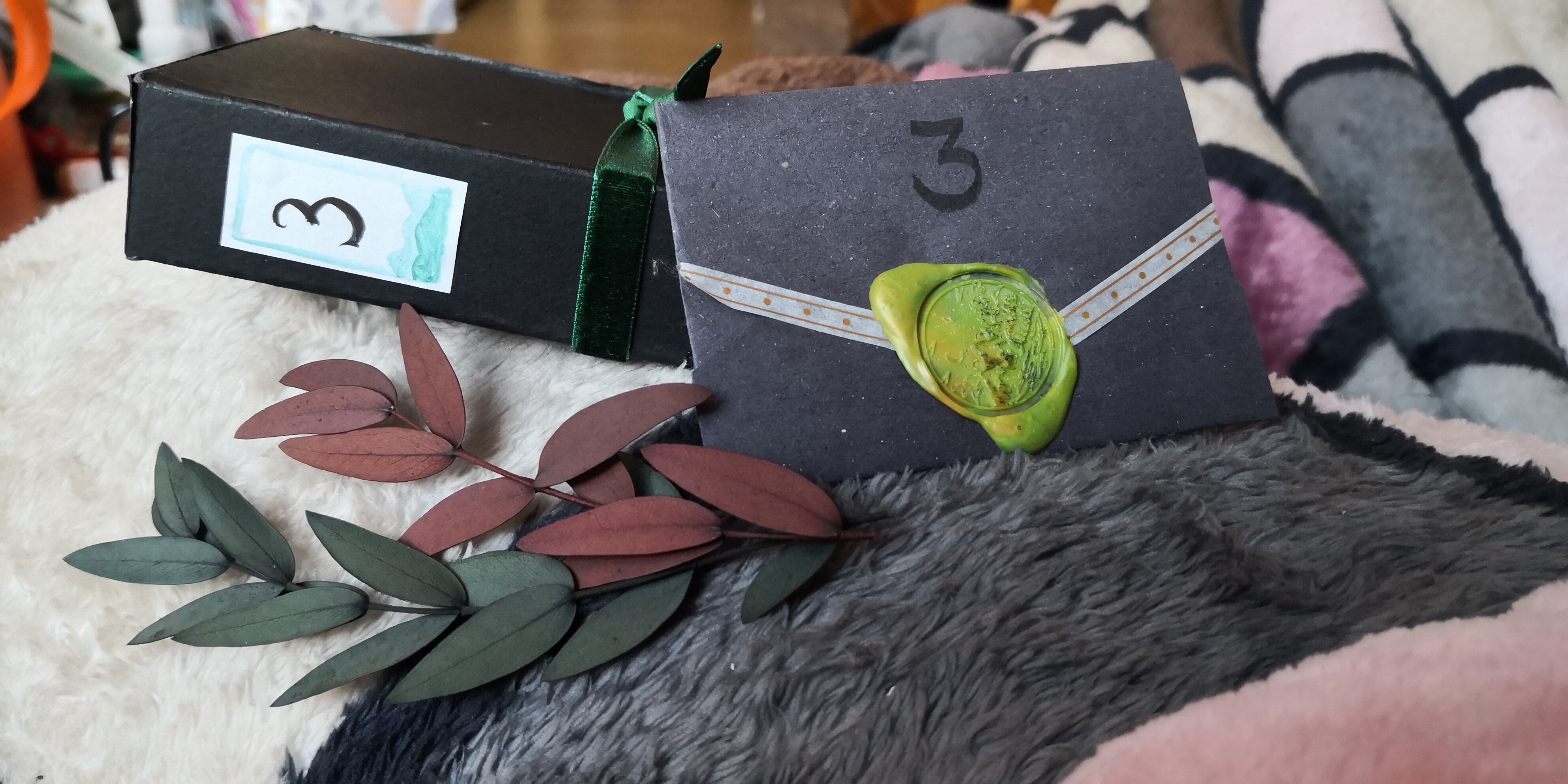 Es gab diesmal etwas, was ich mir schon länger gewünscht hatte: Ein Set zum Stempel selber machen. Das ist toll! :D Wollte ich schon immer mal ausprobieren! Außerdem gab es einen süßen kleinen Lavendel-Duftbeutel (der kommt gleich in den Schrank ^^ die anderen da drin sind uralt, passt also dass ein neuer dazukommt) sowie ein Glas mit Grüntee. Der wurde noch nicht probiert… Ich muss gestehen, dass ich mit den ganzen leckeren Heißgetränken (Tees und Kaffees) gerade ein bisschen hinterherhinke. ^^° Das ist natürlich keine Beschwerde: Wichtelmama @Eleisis meint es einfach sehr gut mit mir! (Und keine Sorge: den Grüntee gibts halt morgen zum Frühstück.) Ich genieße das total… Und muss dann wohl gleich mal anfangen, über ein Stempelmotiv nachzudenken.