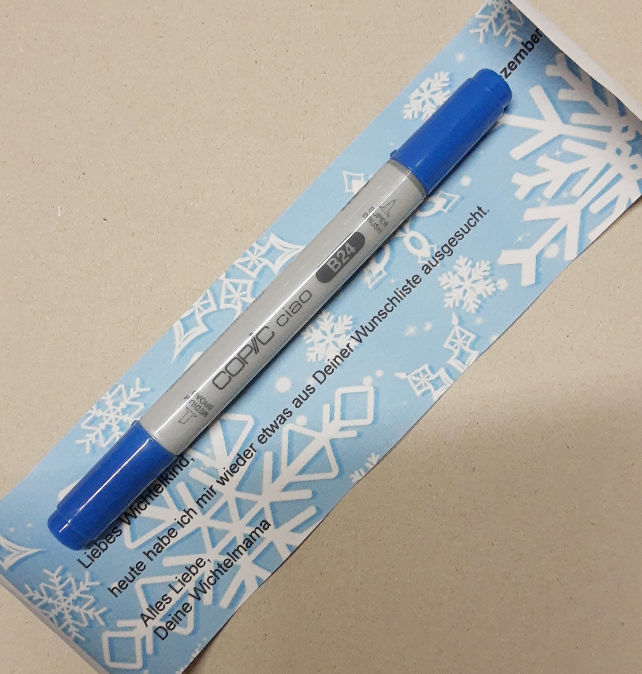 Im 4. Päckchen befand sich heute ein blauer Copic ciao Marker, da meine Schwester auch schon welche bekommen hat ist das ein weiterer für die noch kleine Sammlung x3