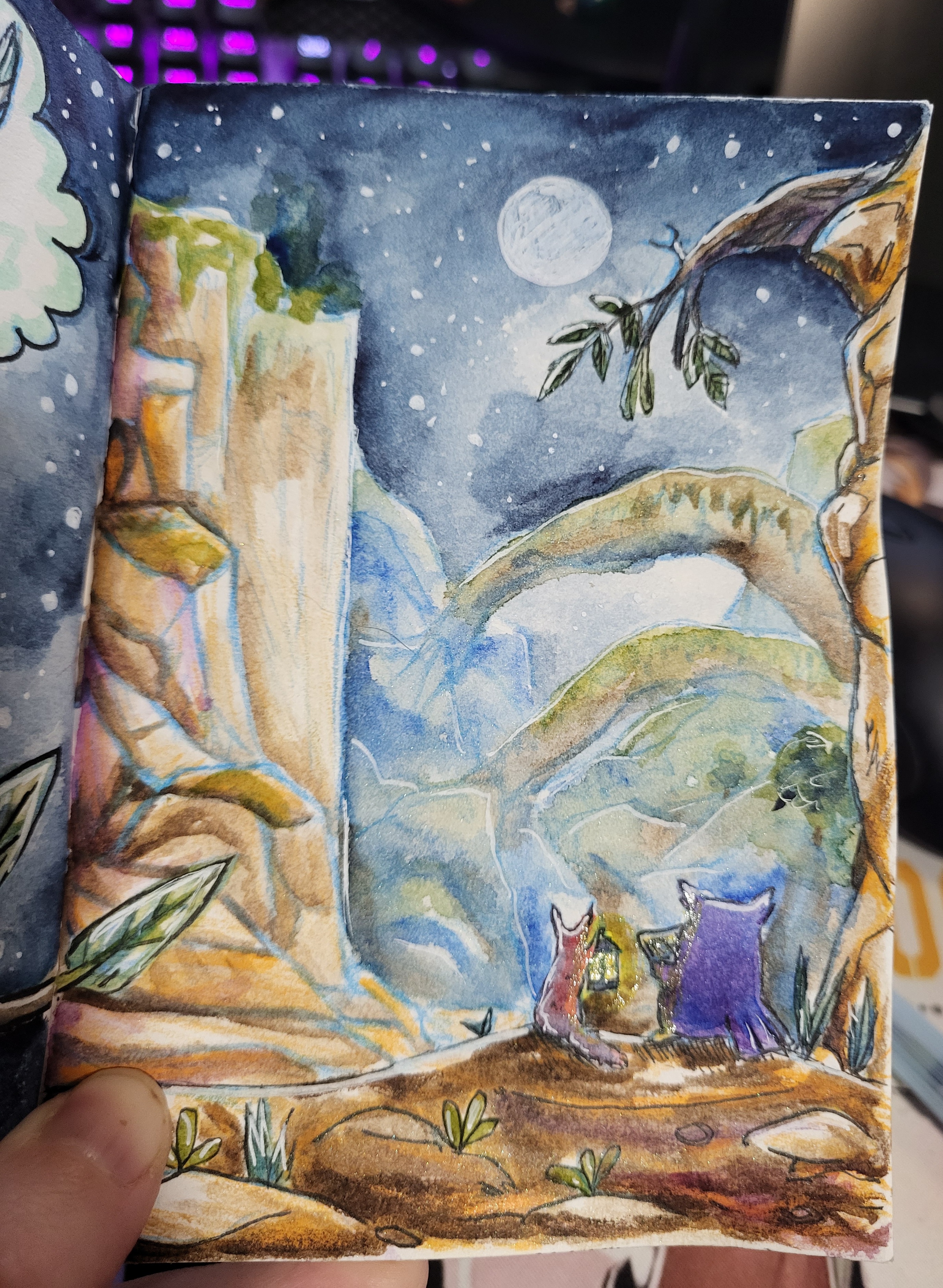 Ich habe noch ein Bild von gestern nachzureichen: der süße kleine Fuchs, der sich auch auf den Weg macht (nur halt heimlich) guckt aus dem Gebüsch. :3 Poscas in weiß und schwarz (von @Eleisis] und Artistic Isle Aquarellfarben (von yhlee) in Arteza Aquarell-Skizzenbuch (von @Glitzermond). Ich habe einen riesigen Spaß dabei, alles durcheinander zu benutzen!