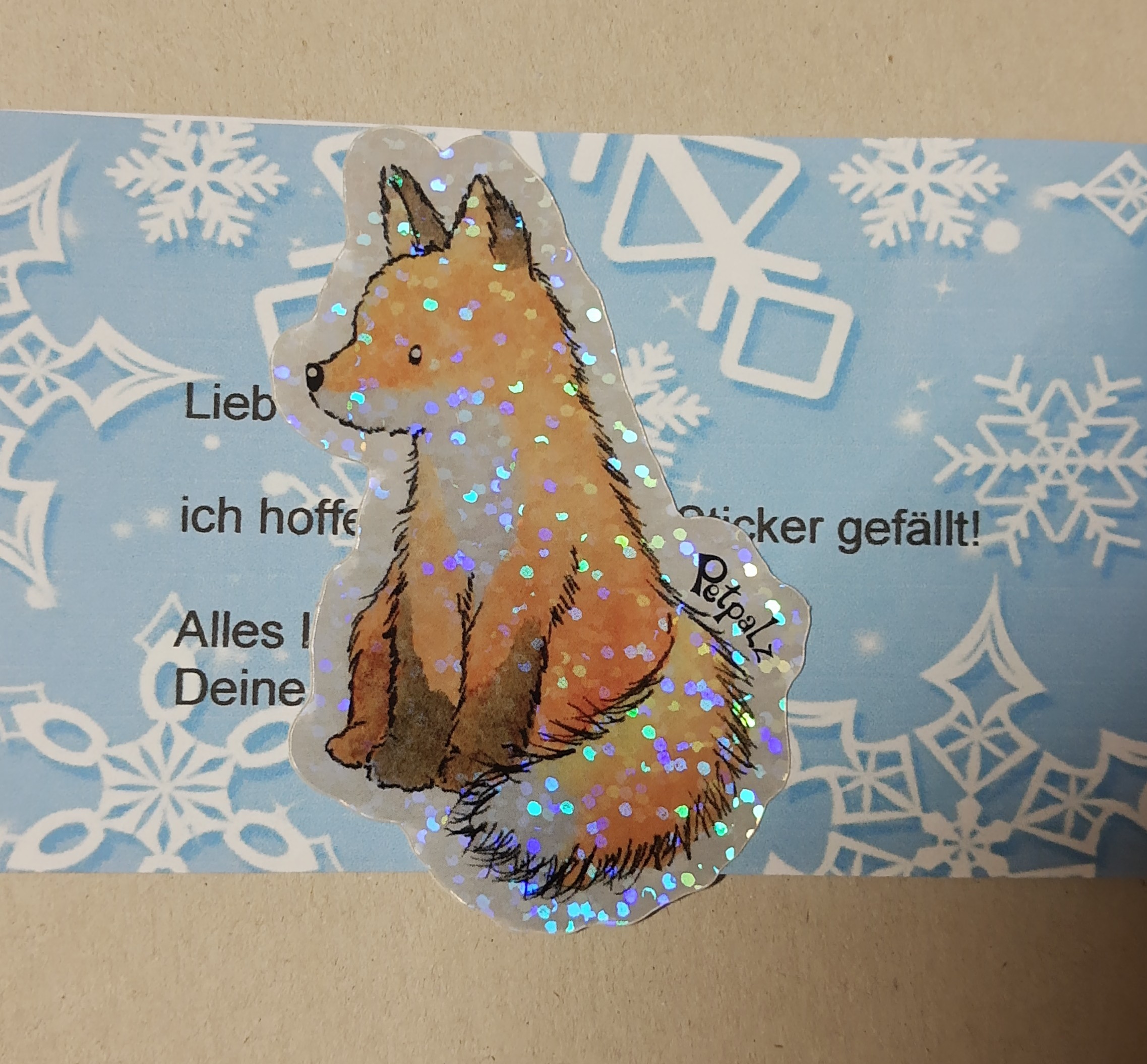 Heute habe ich einen mega süßen glitzernden Fuchs Sticker bekommen, der bekommt definitiv einen Ehrenplatz x3❤️