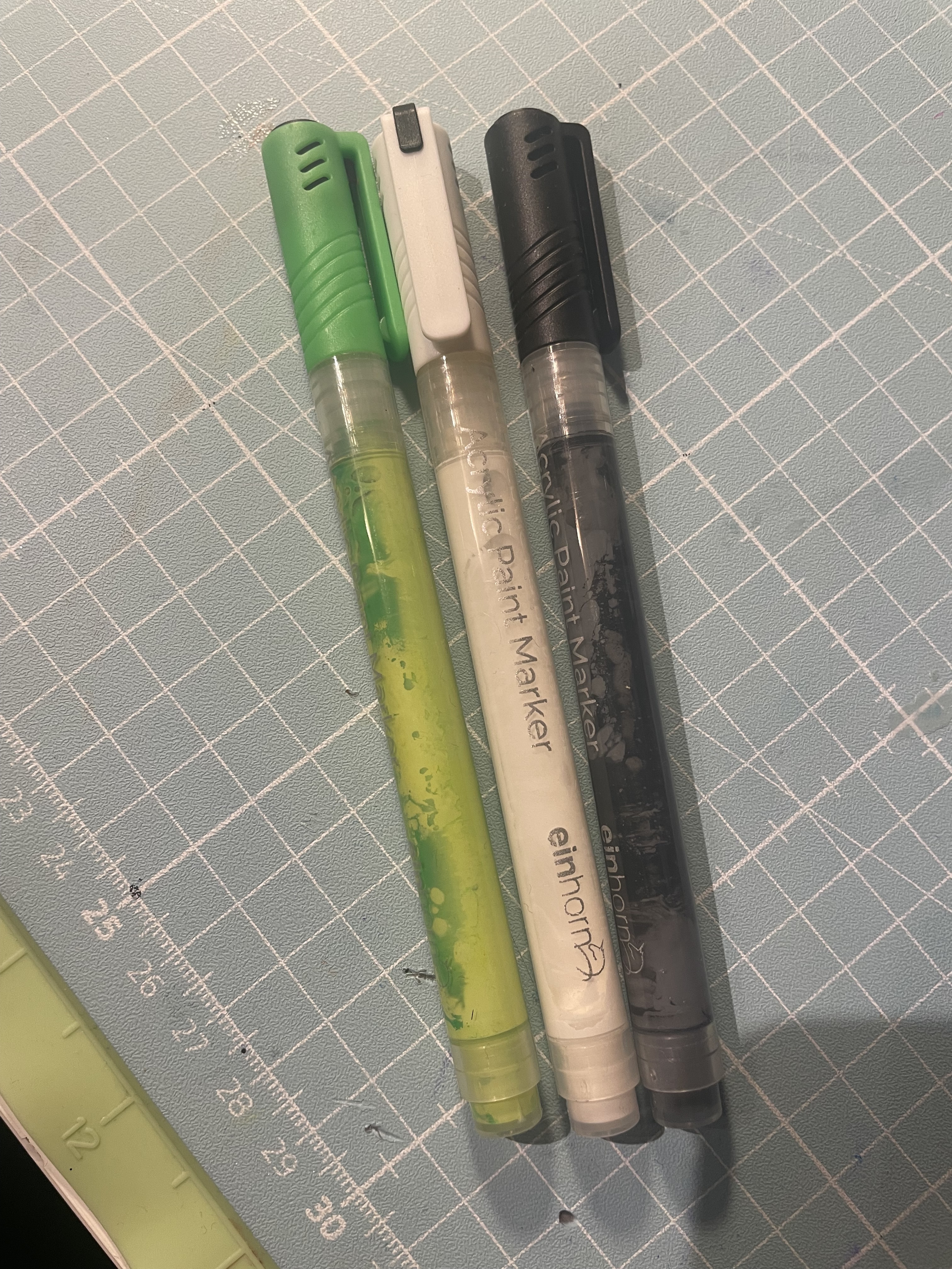 Außerdem scheinen sie mir etwas metallischer, während die Posca einen Hauch glitzeriger sind. Schwarz kann man immer gebrauchen und das weiß scheint auch ganz gut zu decken ^-^