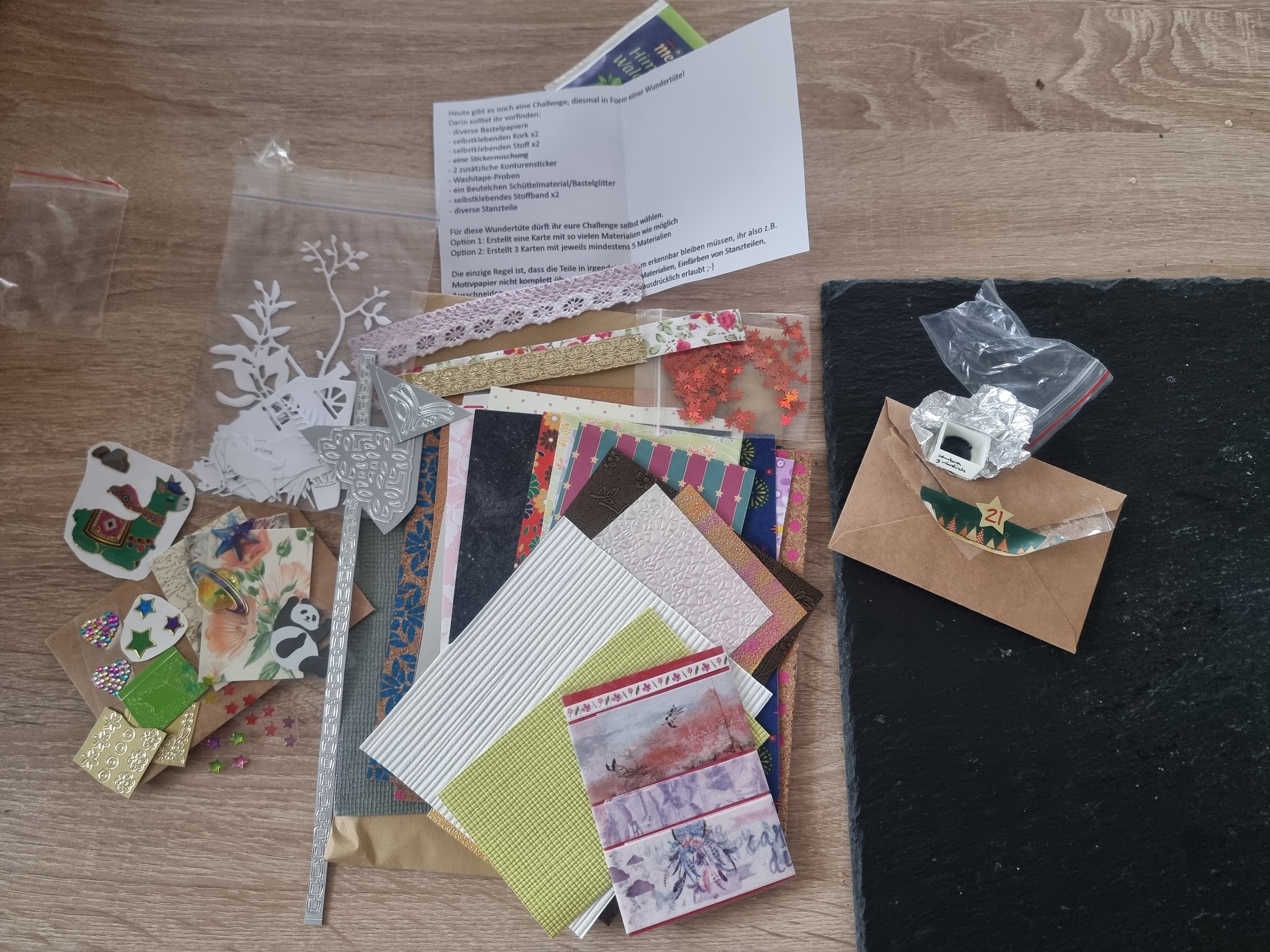 Gestern gab es eine richtig tolle Wundertüte mit einer tollen Auswahl an Papieren, Stickern usw.