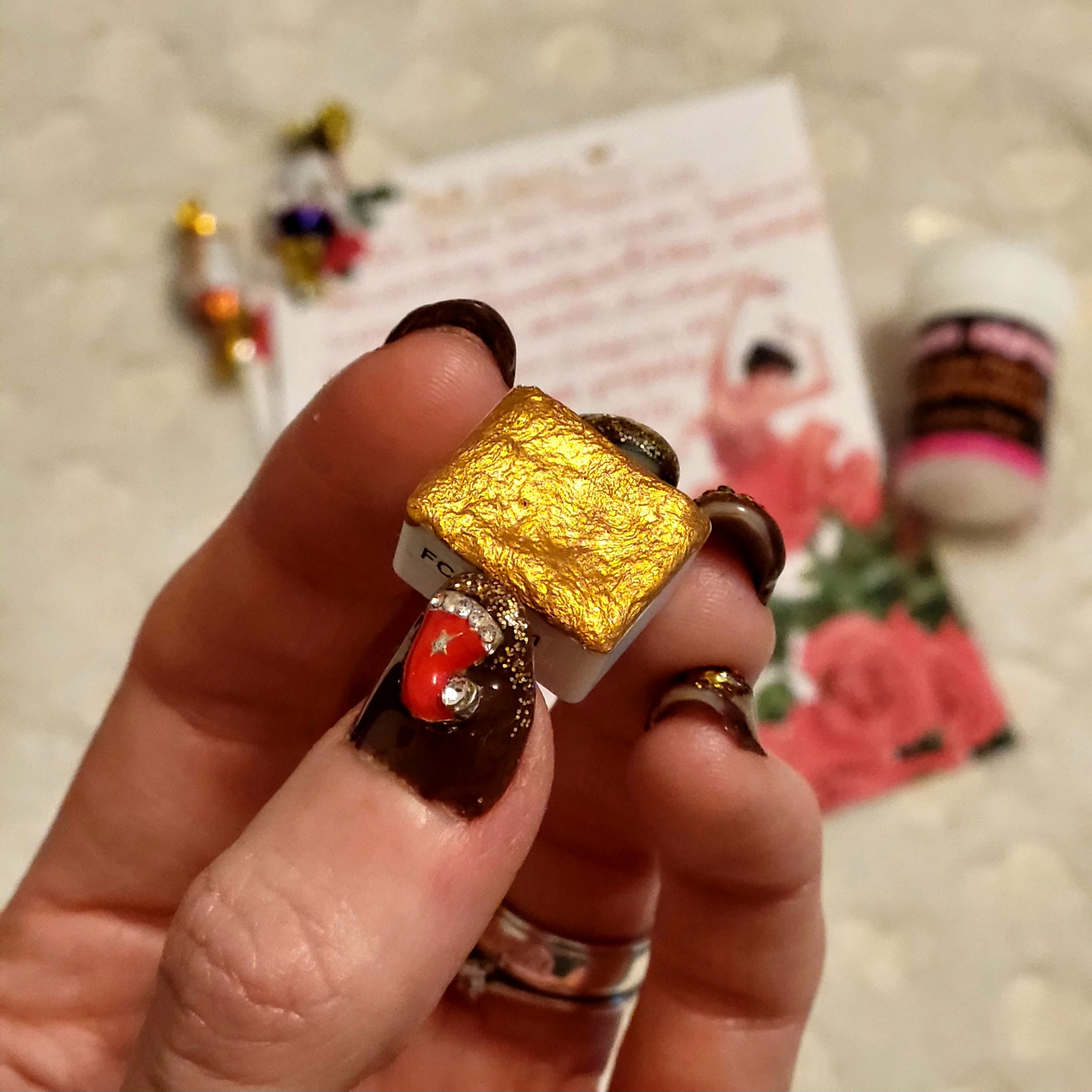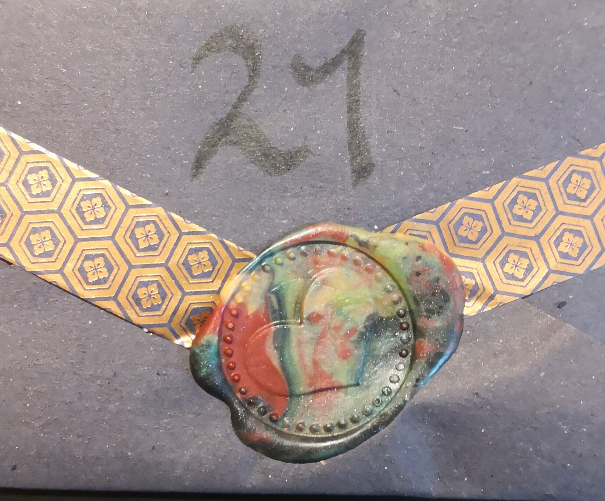 Heute gab es neben einer weiteren Micafarbe einen Kristall (Ich denke Bergkristall, wobei es einen leichten Gelbeinschlag hat, damit wäre auch Citrin möglich), eine Leerdose für die Aquarellfarben und eine weitere Ink.