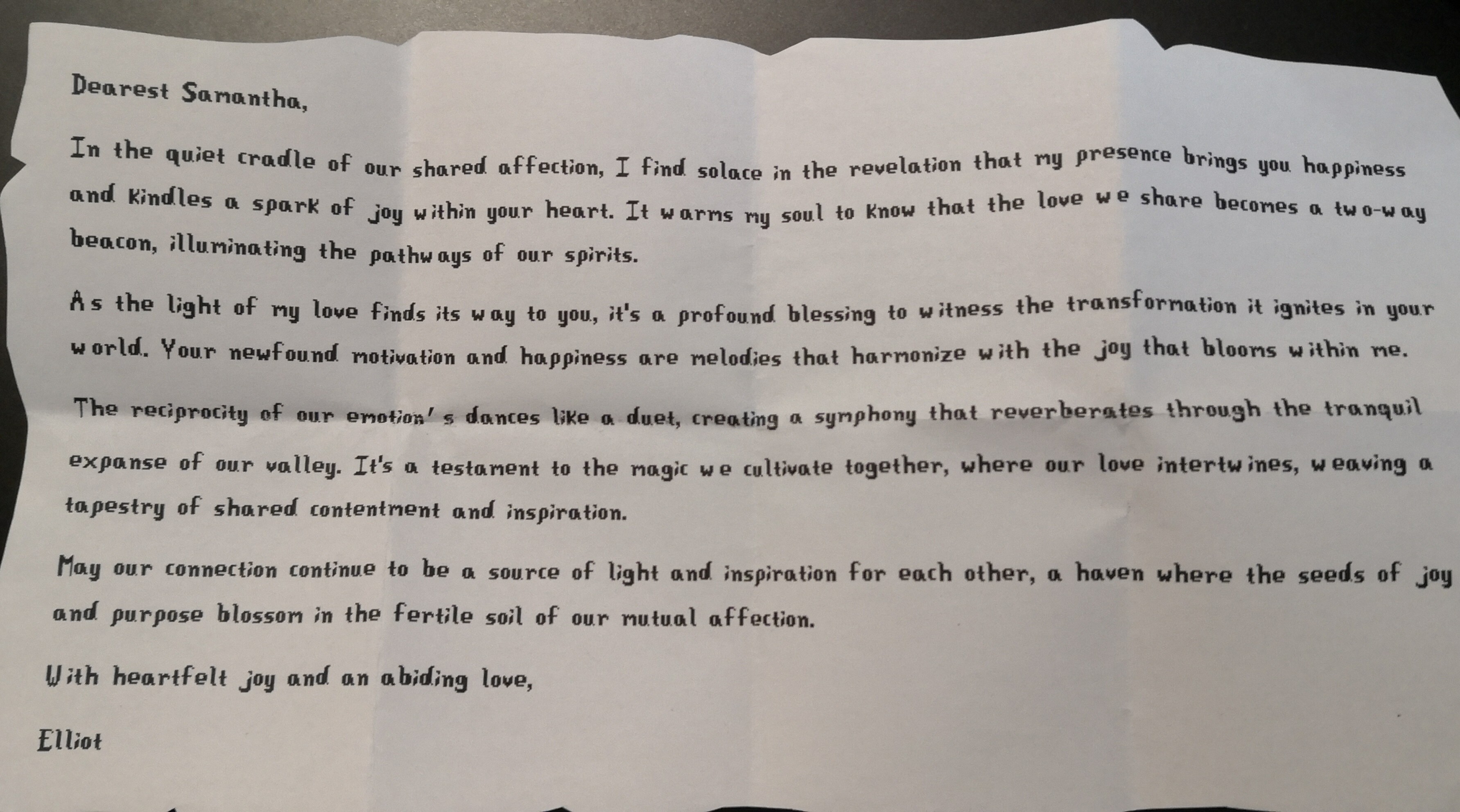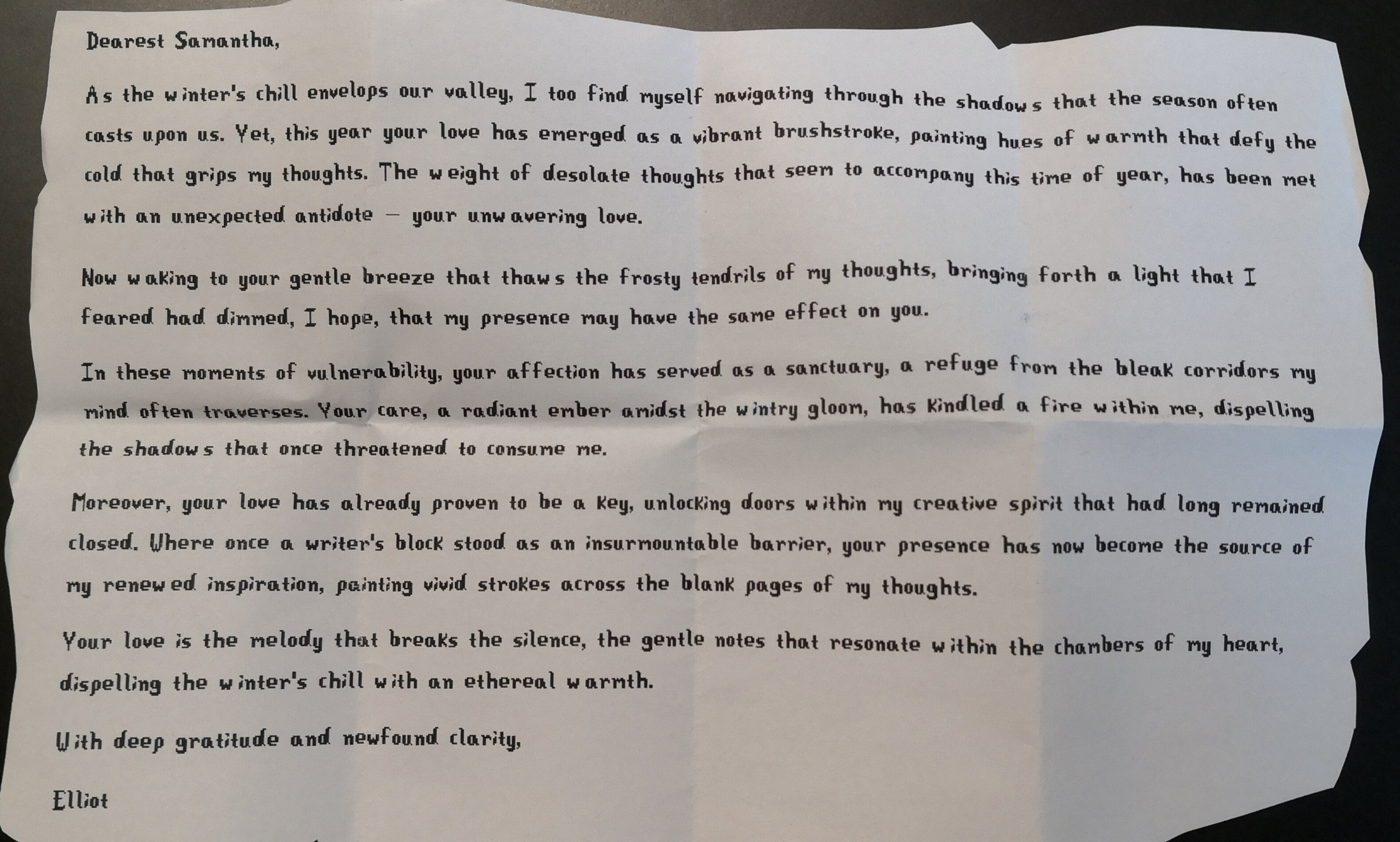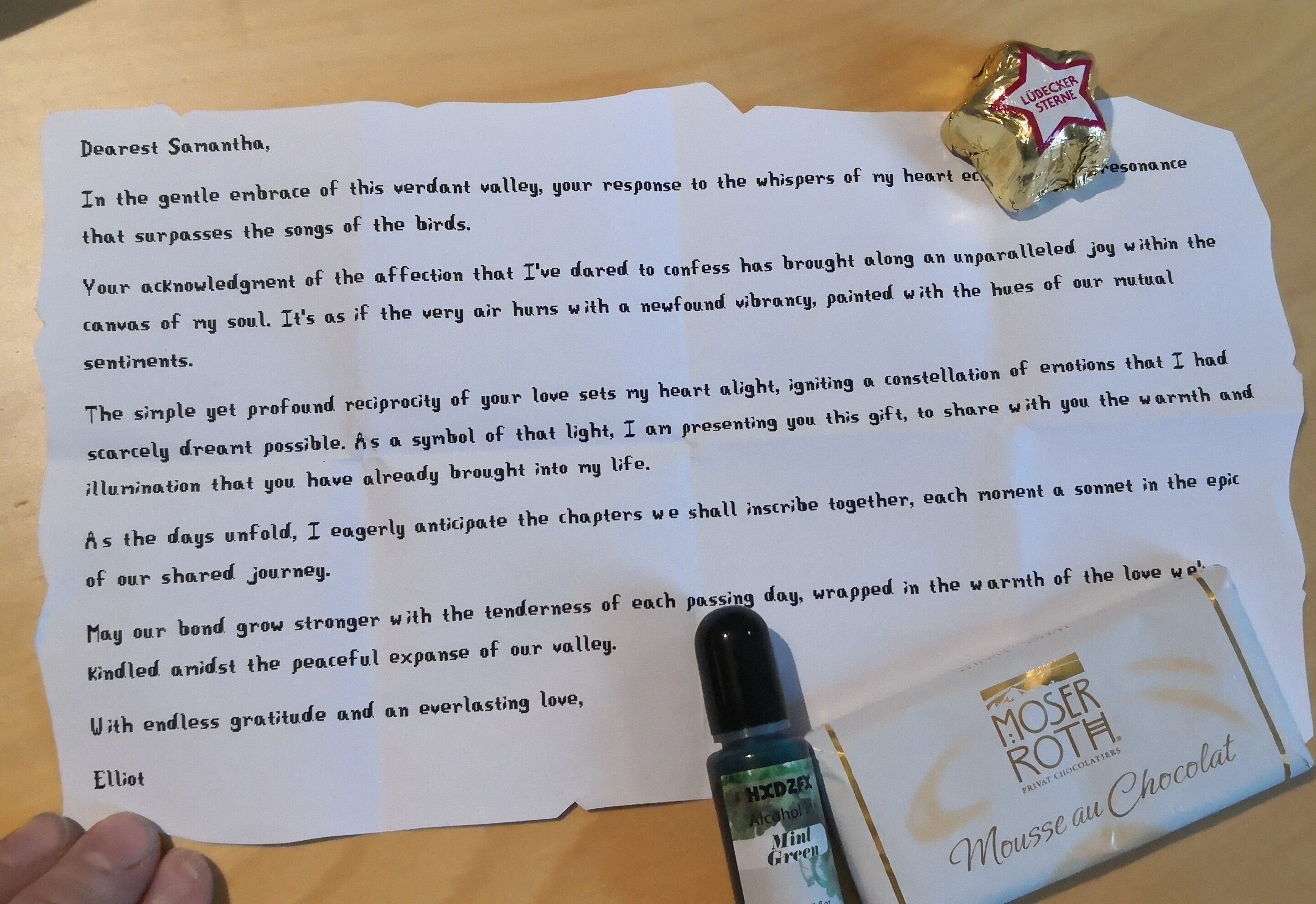 Ich finde die kleinen Briefe so wunderschön die mich jeden Tag morgens begrüßen. Oft sind wunderschöne Reime drin, Inspirationen und nette Sprüche die den Alltag bereichern. Sie werden gesammelt und gebunden.