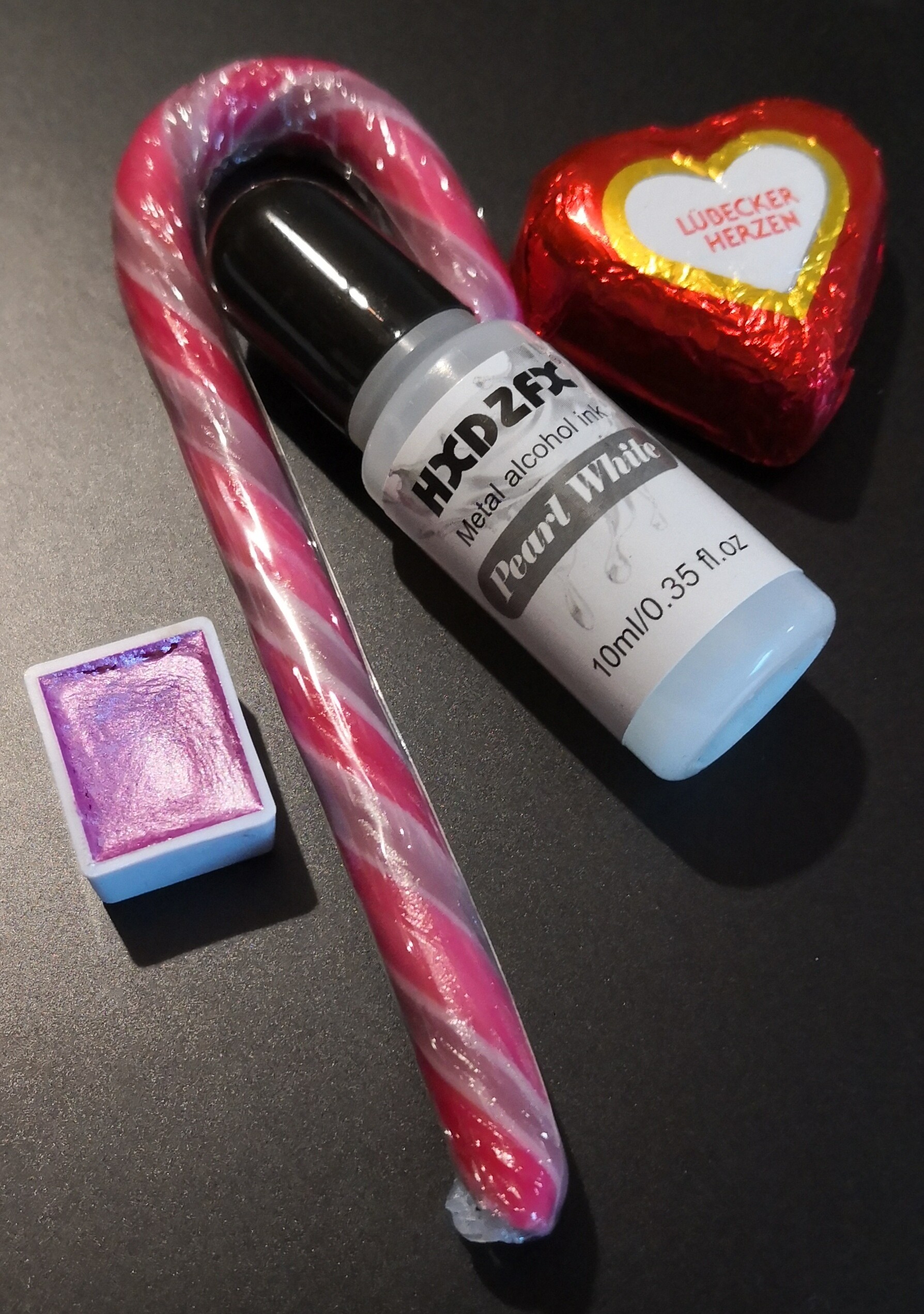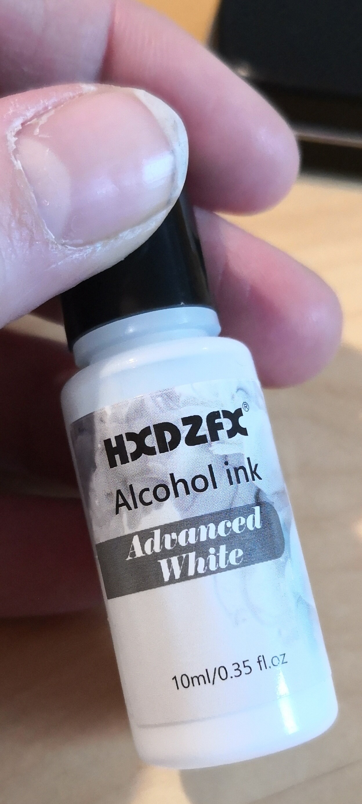 Bevor ich es unterschlage: Ich weiß nicht mehr, in welchem Türchen das Weiß war. Aber eine Frage habe ich dazu: Ist Advanced White gleich “Sinker White”? Ich habe Alkoholinks noch nie benutzt, aber ich weiß, dass man im Harz selbst ein sinkendes Weiß braucht, weil die bunten Farben sonst schwimmen.