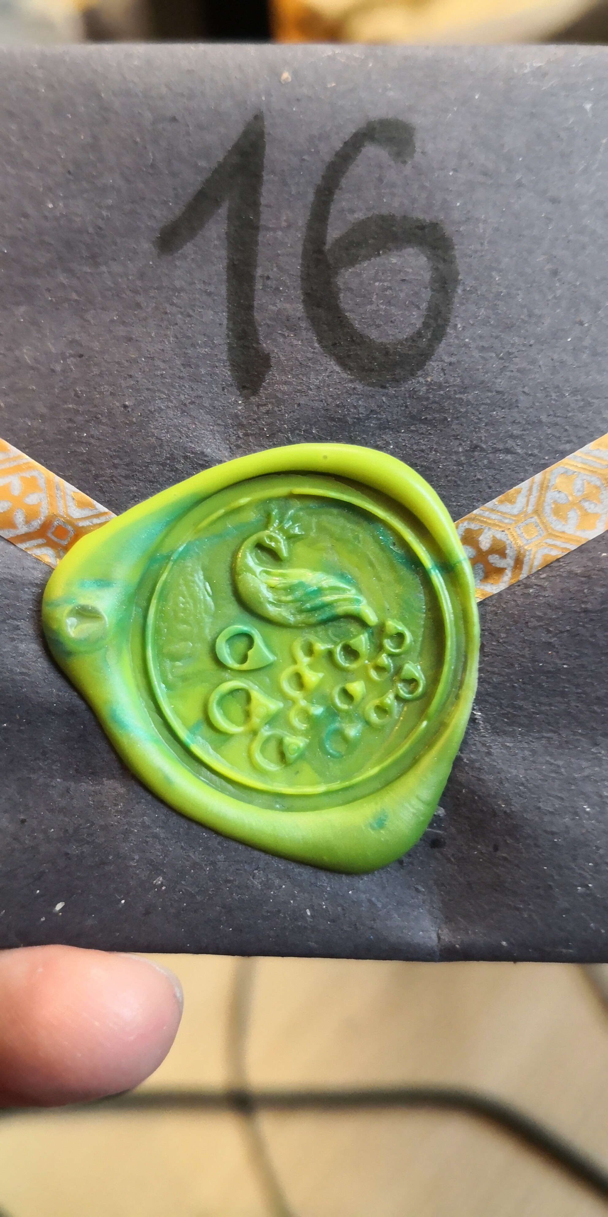 Das und das Schraubgewinde an dem Holzgriff erklärt alles. Ich habe nun mein erstes, eignes Siegel. Sehr weihnachtlich.