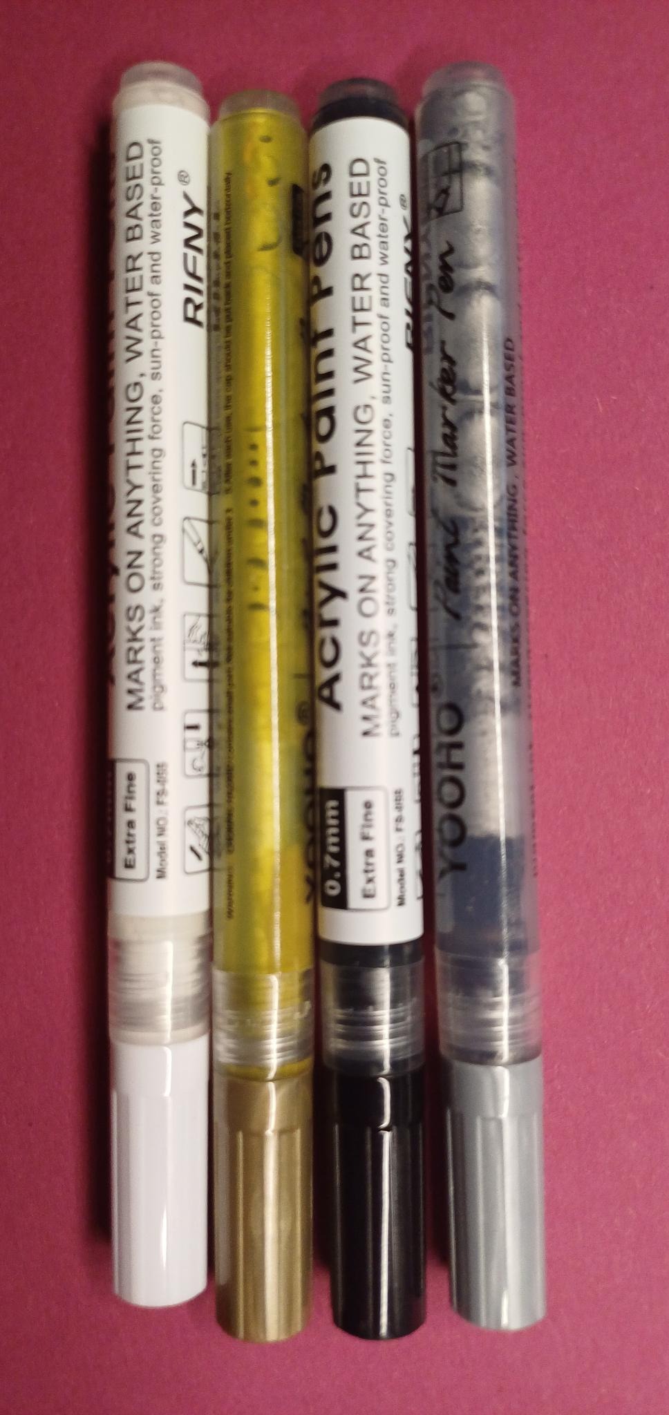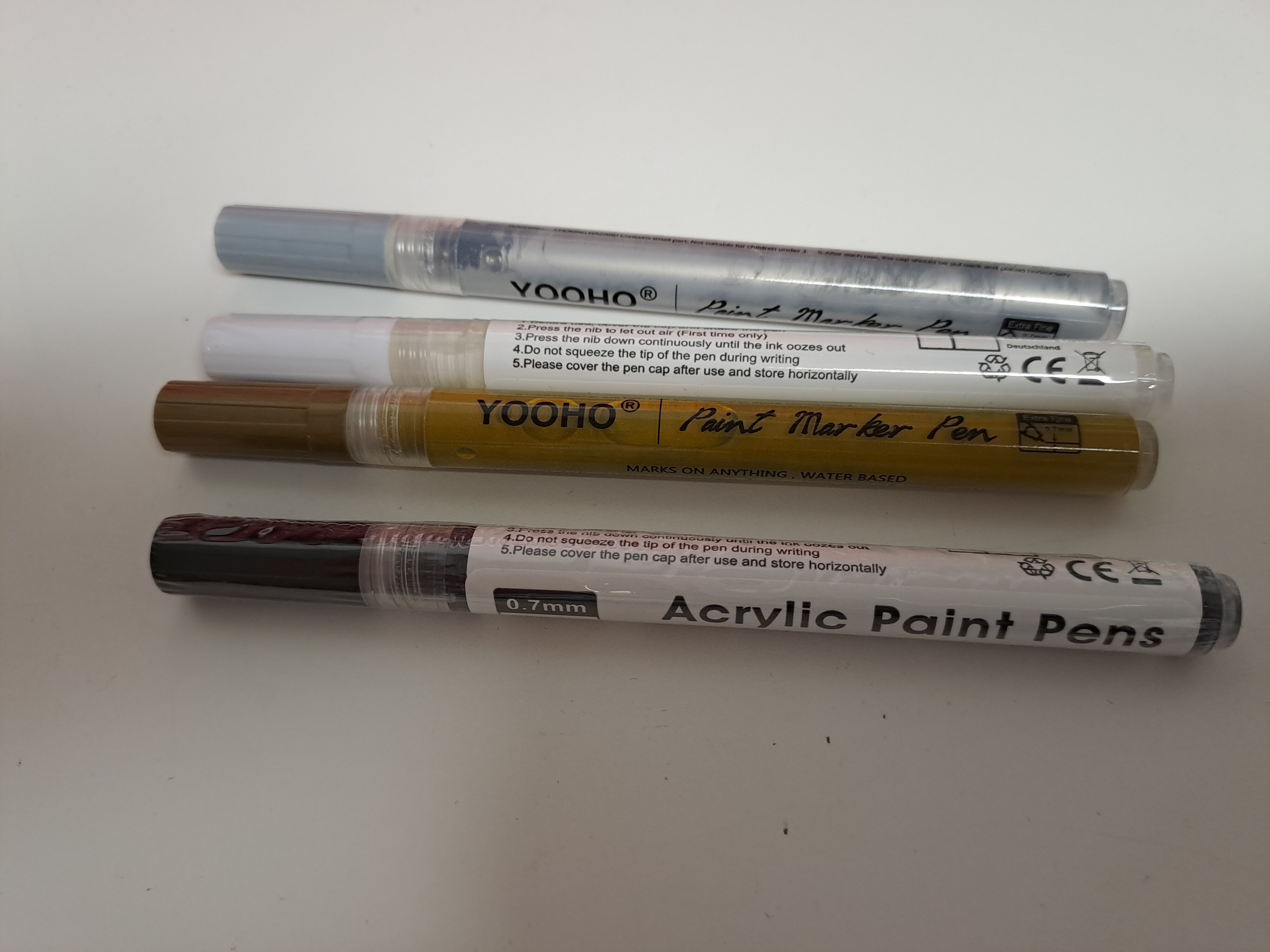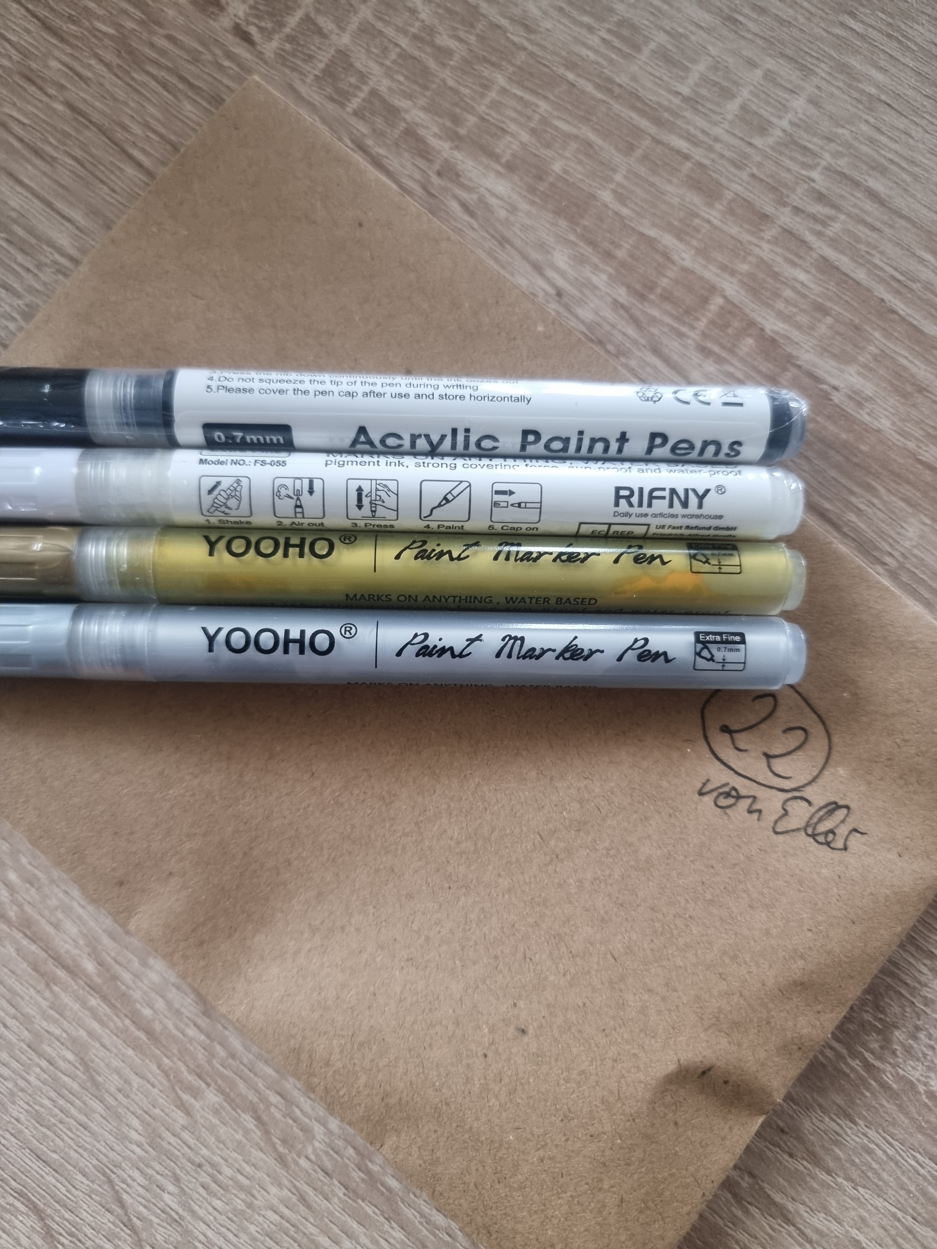 Im Zusatztürchen 22 waren vier schöne Acrylstifte in den Farben gold, silber, weiß und schwarz und ich finde sowohl die Farben sehr gut als auch die Spitze, man kann schöne feine Linien damit ziehen und gut damit schreiben. Wurden auch alle vier schon für Weihnachtskarten genutzt :D