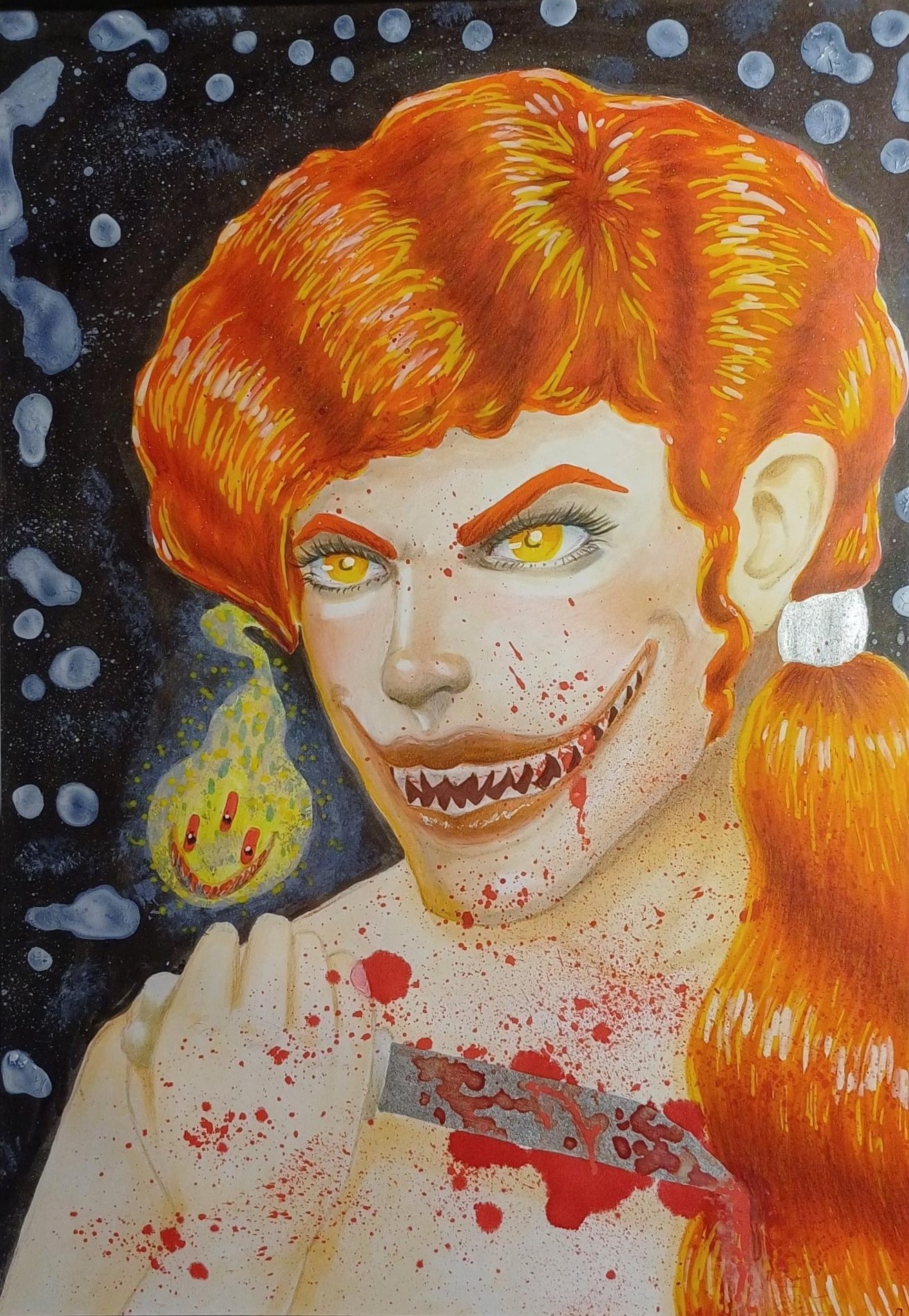 Richtig gut gelungen und ich mag besonders diese verschiedenen Splatter im Bild und dieses Grinsen der beiden, genial! Das bekommt auf jeden Fall einen schönen Platz^^