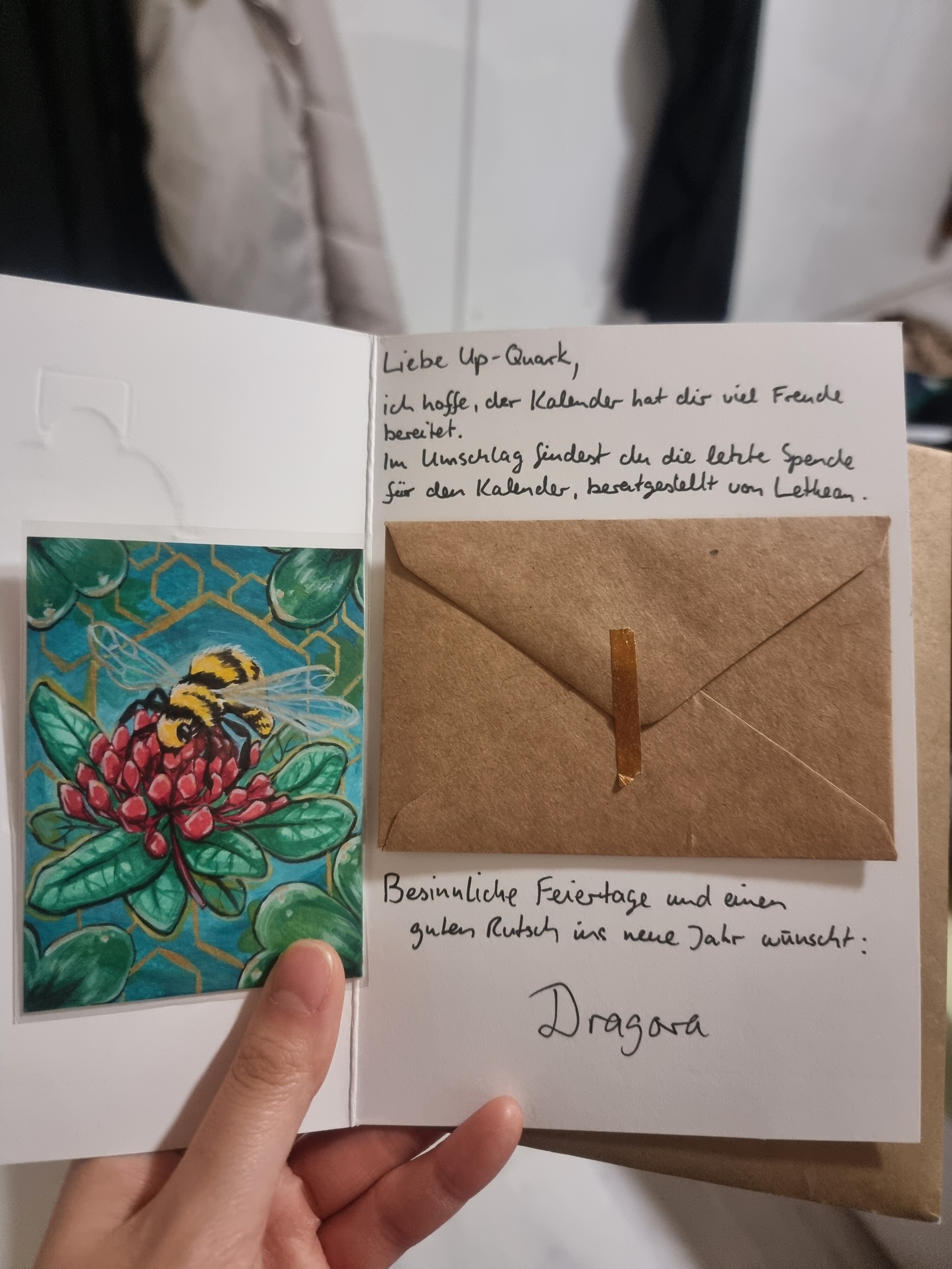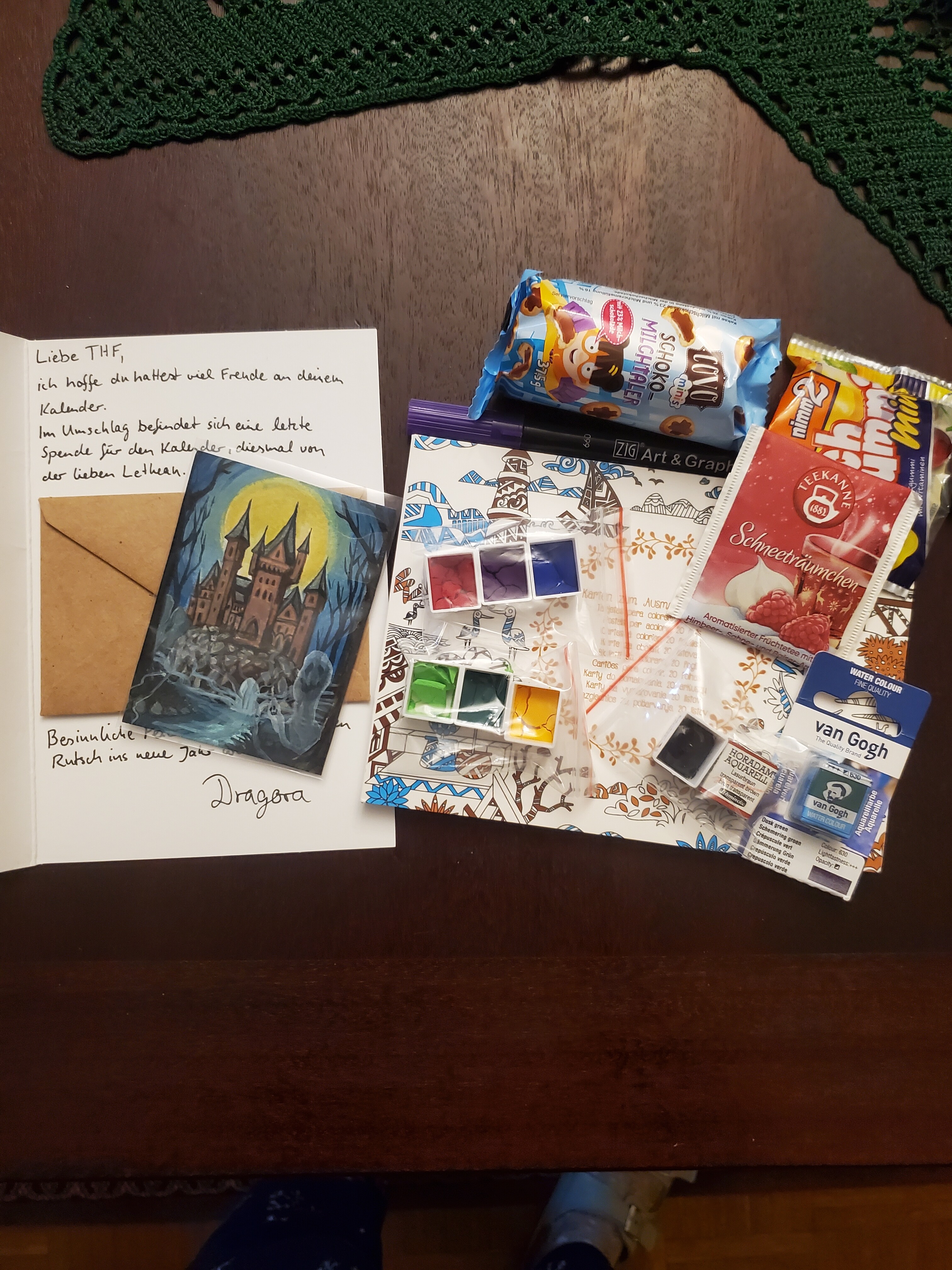 Zusätzlich durfte ich jetzt zum Abschluss des Adventskalenders noch einen Briefumschlag öffnen, in dem die wunderbare Weihnachtskarte war, auf die meine Wichtelmama mir noch ein paar liebe Worte zum Abschluss geschrieben hat