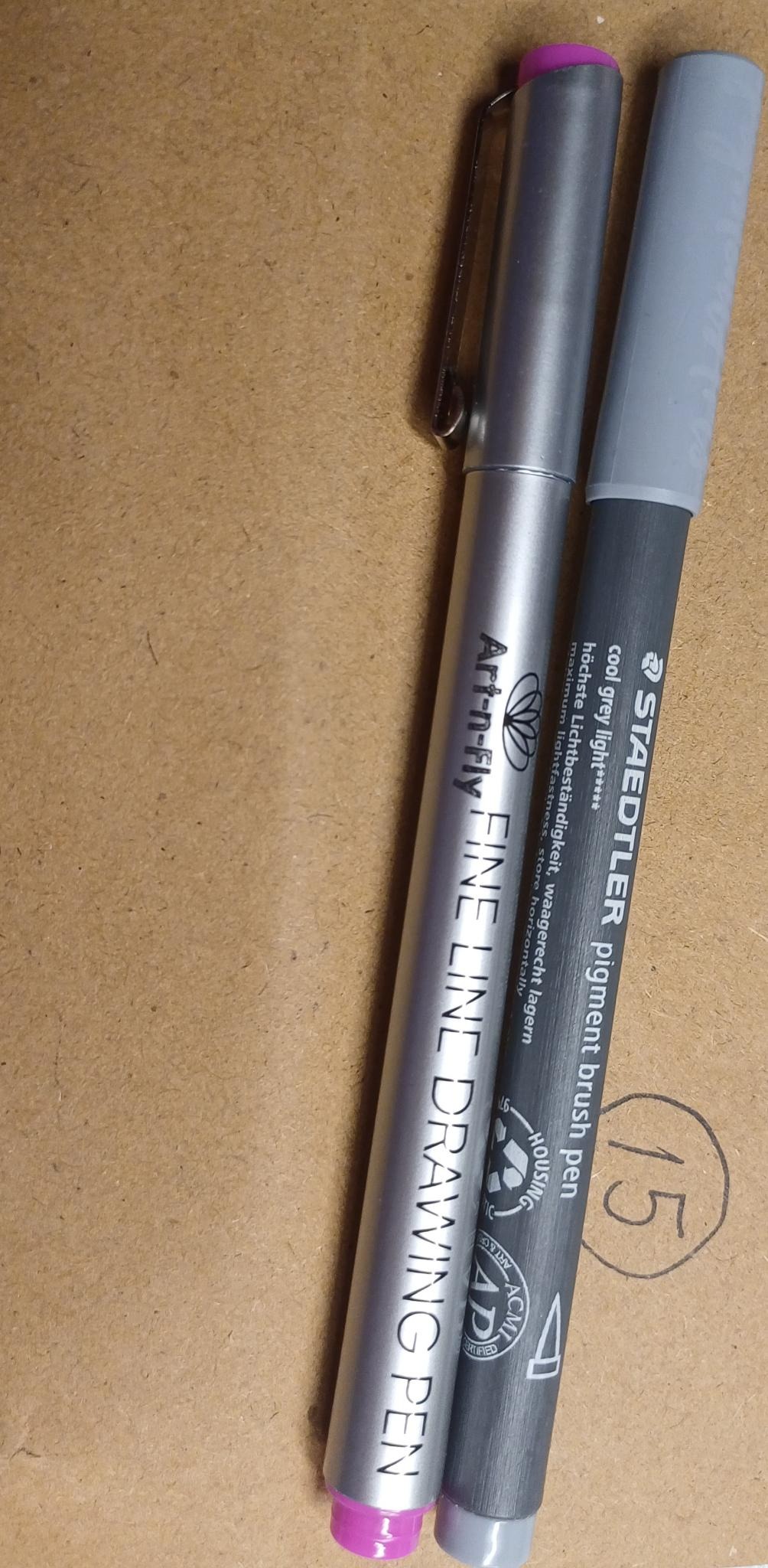 Am 15. gab es für mich im Zusatztürchen zwei Stifte von Eller, einen Fineliner in pink und einen Brush Pen in hellgrau^^