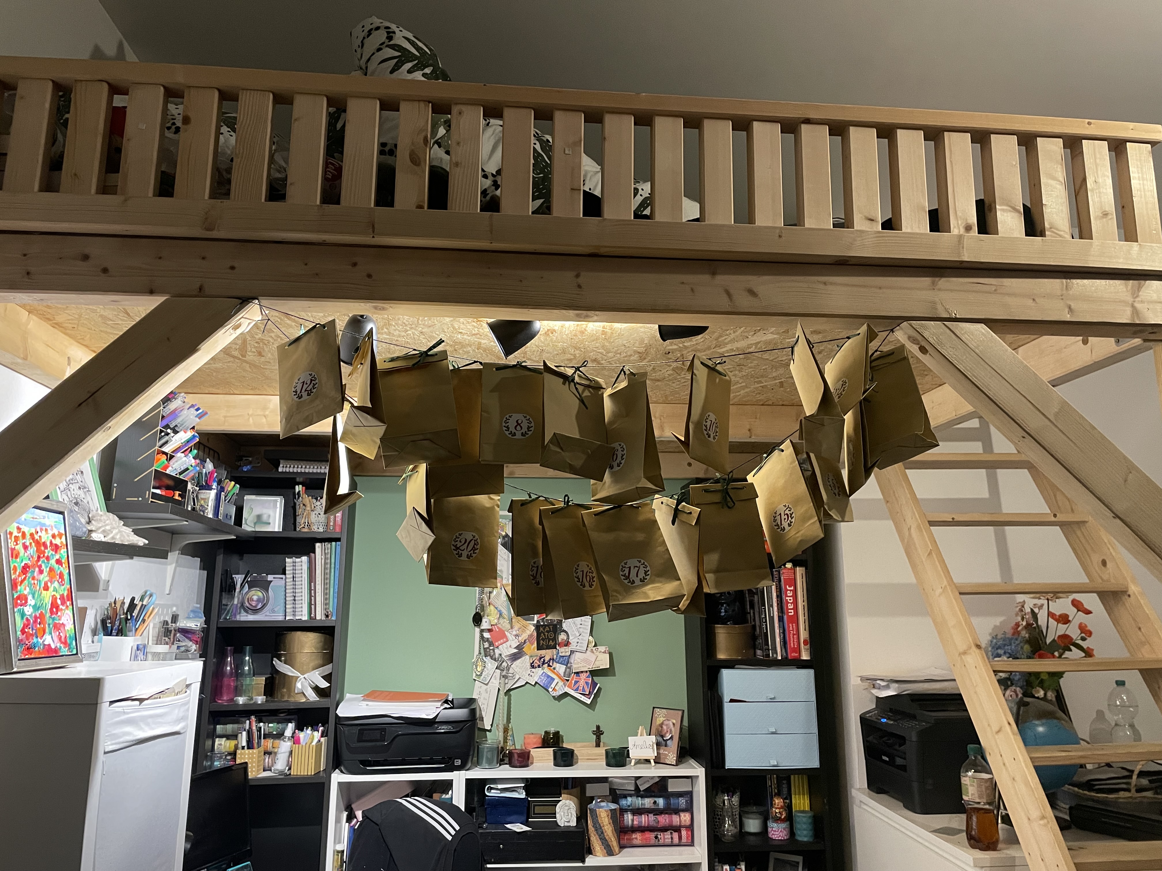 AuĂerdem hab ich den Adventskalender endlich an meinem Hochbett aufgegangen :)