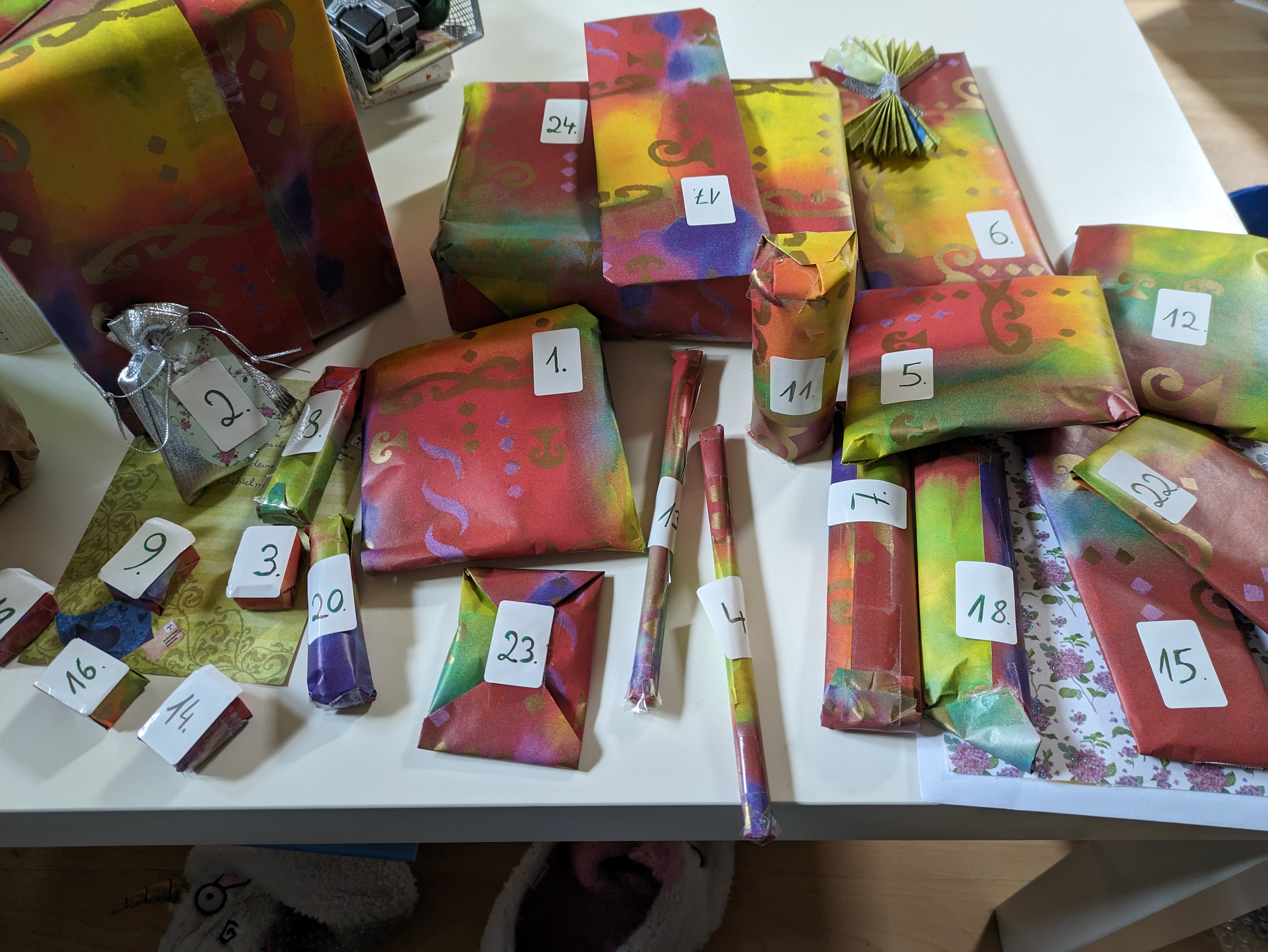 Hier mein Kalender in ausgepackt, vielen Lieben Dank an meinen Wichtel - PÀckchen 1 und 24 machen interessante GerÀusche :o