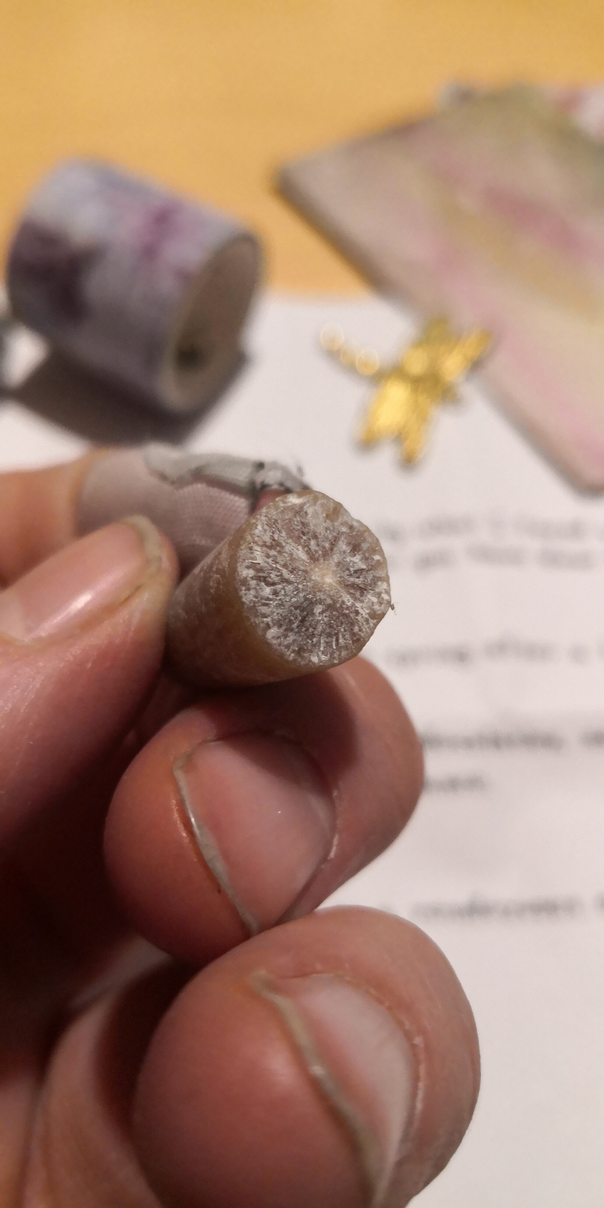 Mein besonderes Highlight ist die Donnerkeilspitze. Ich war früher ab und an auf Fehmarn und habe da auch selbst welche gesammelt. Ich finde Donnerkeile und Faserkalk viel spannender als Bernstein: