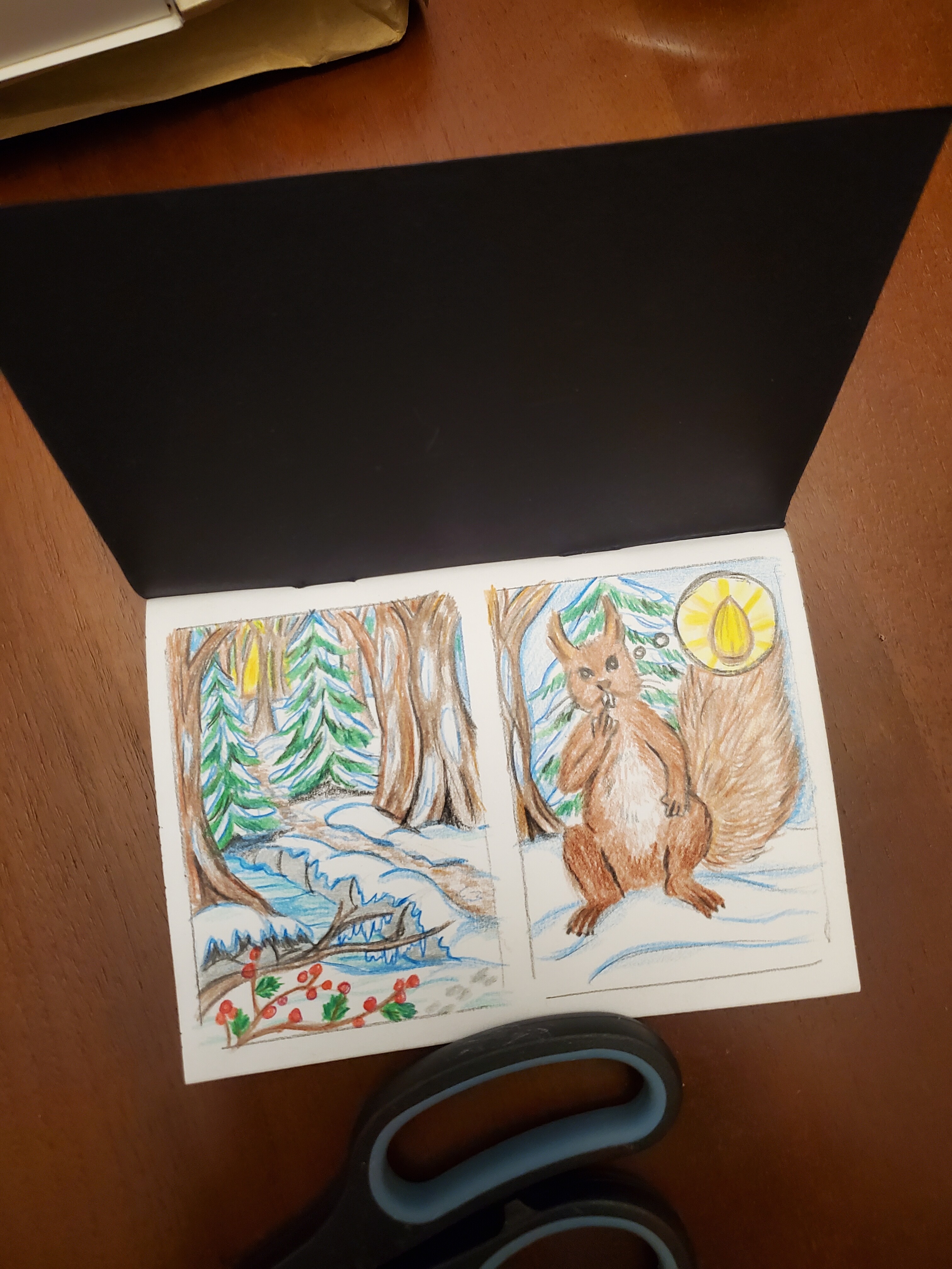 In meinem großen Adventkalender war dann ein selbstgemachtes Skizzenbuch mit Aquarellpapier drinne über das ich mich suuuuper riesig gefreut hatte, es ist so toll <3 und ein wenig Schoko war auch dabei, ich freue mich schon die zu essen! Vielen, vielen lieben Dank @Nil