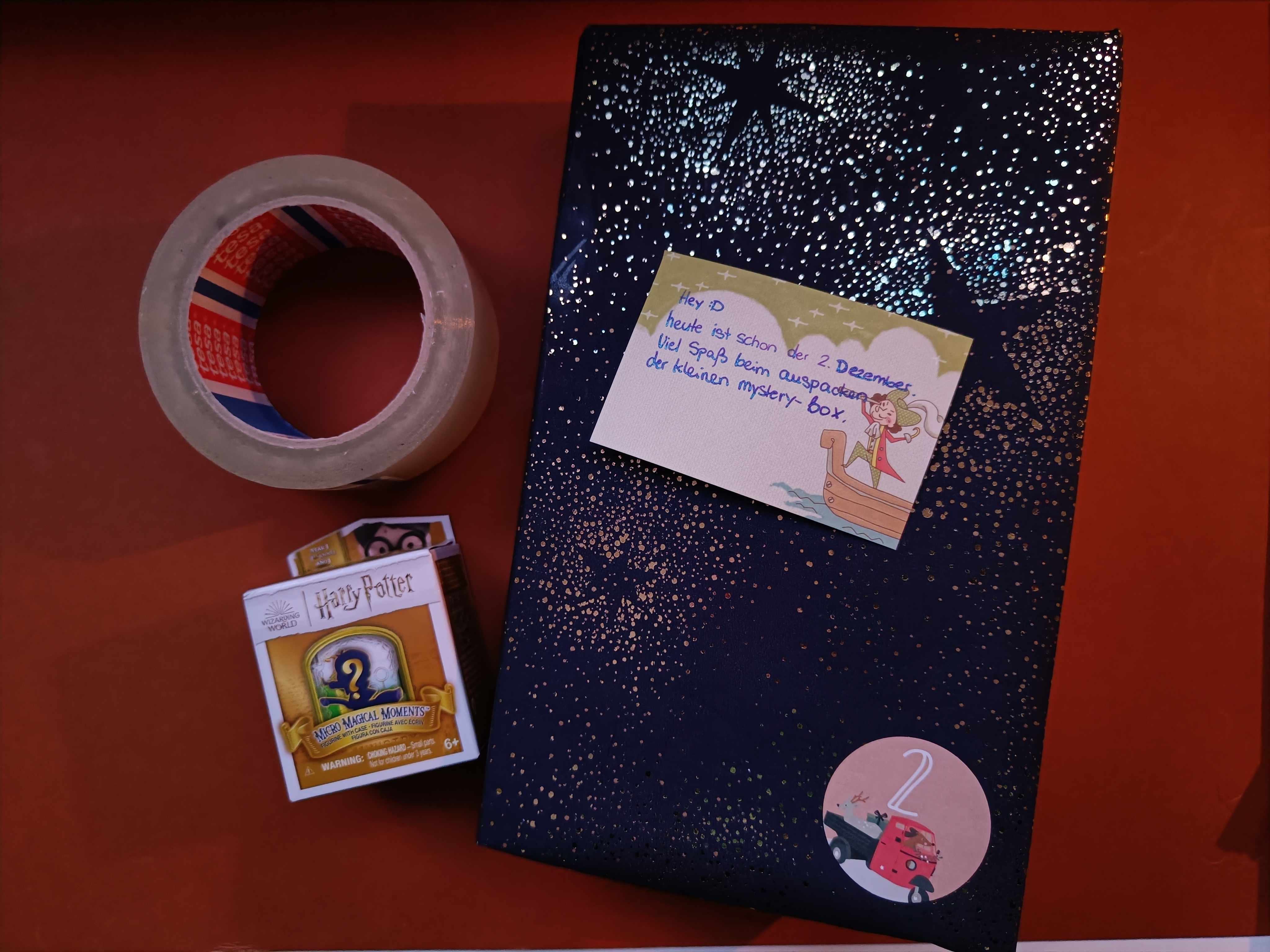Heute gab’s in dieser wunderbaren Buchbox einmal Tesa Paketband, was wirklich gut ist, hier merkt man wirklich den Unterschied zwischen billigem und teurem Paketband. Außerdem diese kleine Mysterybox von Harry Potter, die ich allerdings erst später öffnen werde, da ich diesen Monat die Harry Potter Bücher zu Ende hören will. Bin aktuell beim ersten Drittel von Band 6.