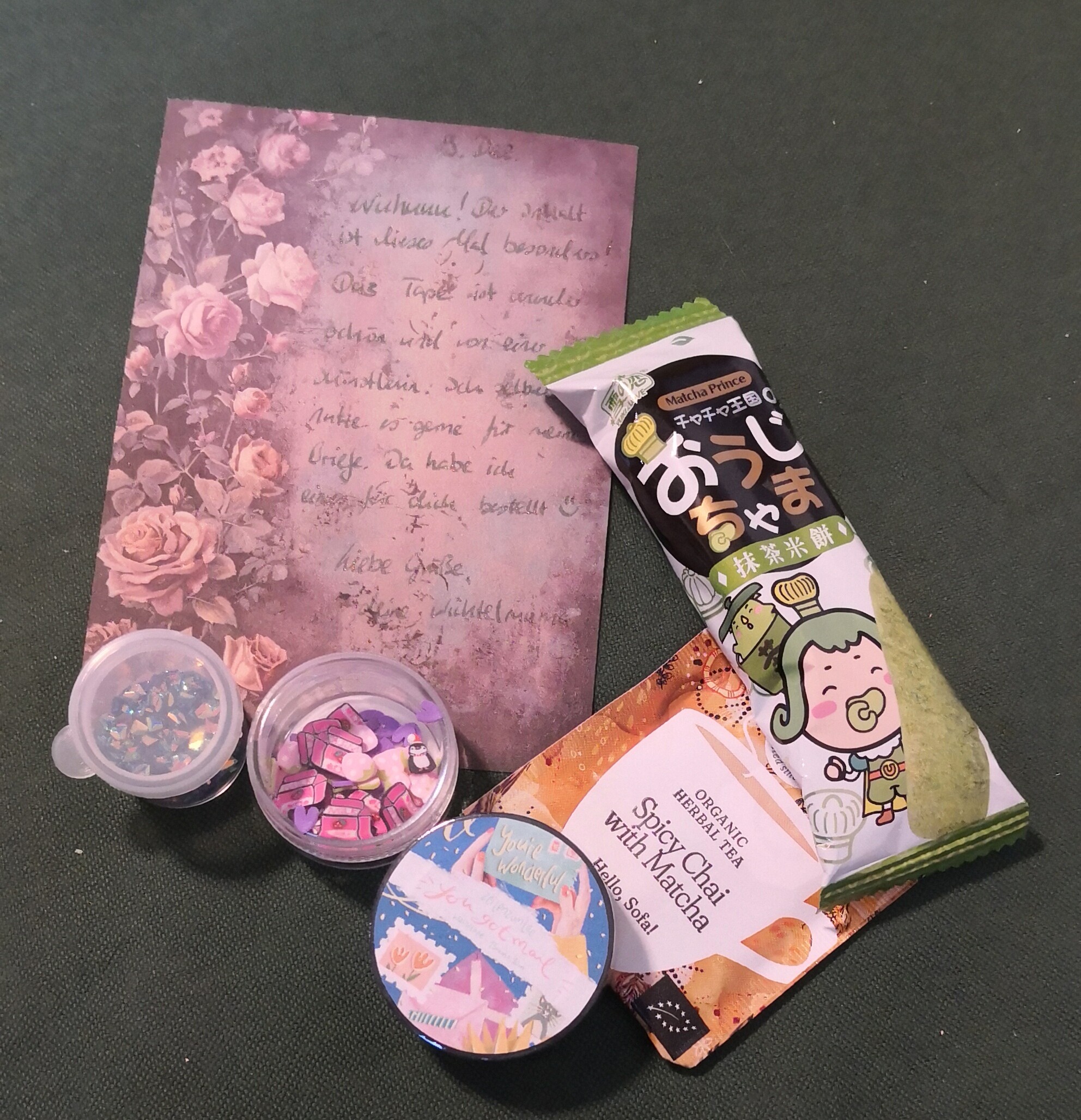 Außerdem habe ich einen besonders ausführlichen Brief bekommen mit Geschichten zum Lesen auf meinem Arbeitsweg <3 ich war schon sehr versucht sie gleich zu lesen, hebe sie mir aber noch bis Freitag auf, habe nämlich gerade noch Urlaub :)