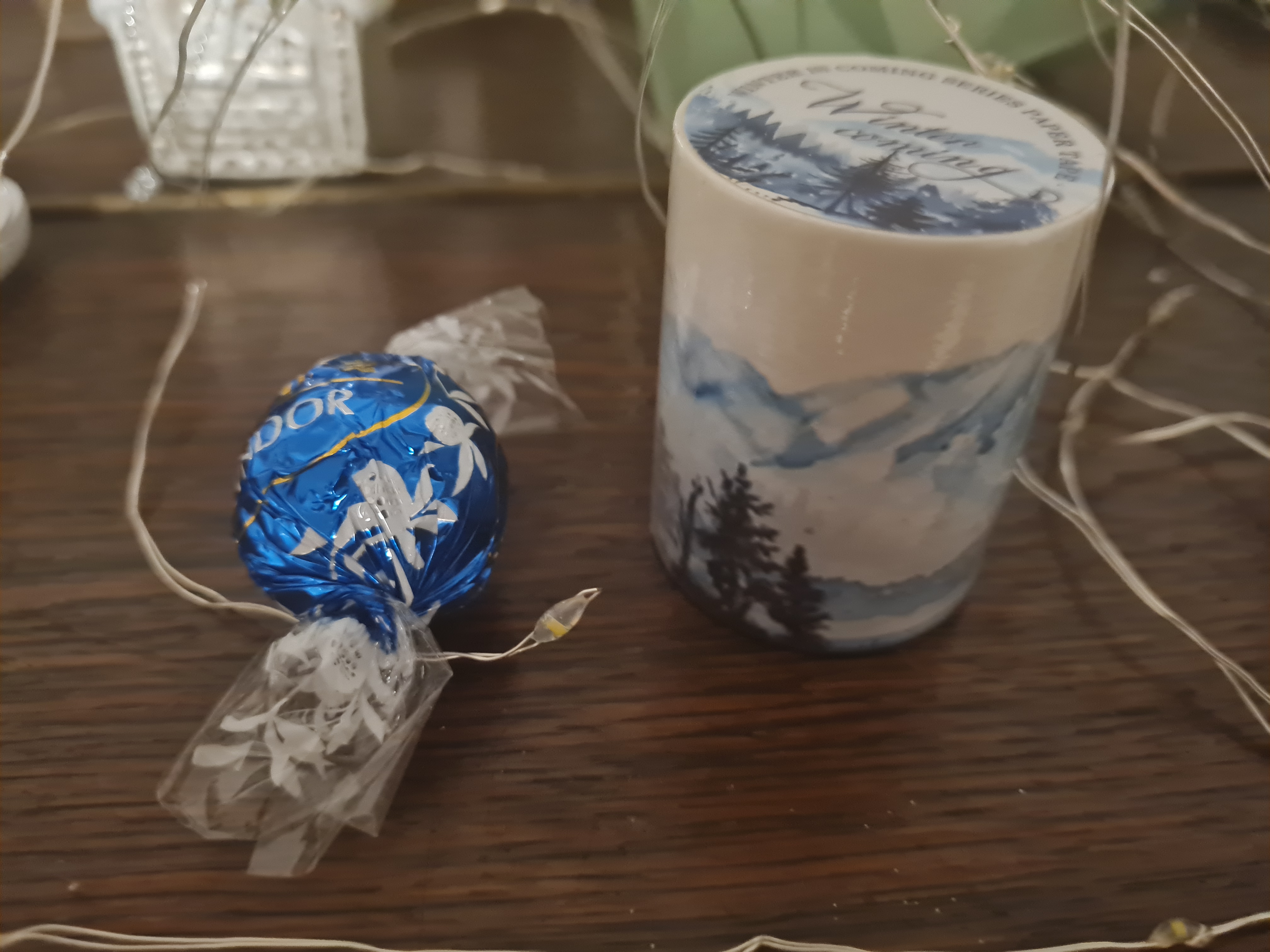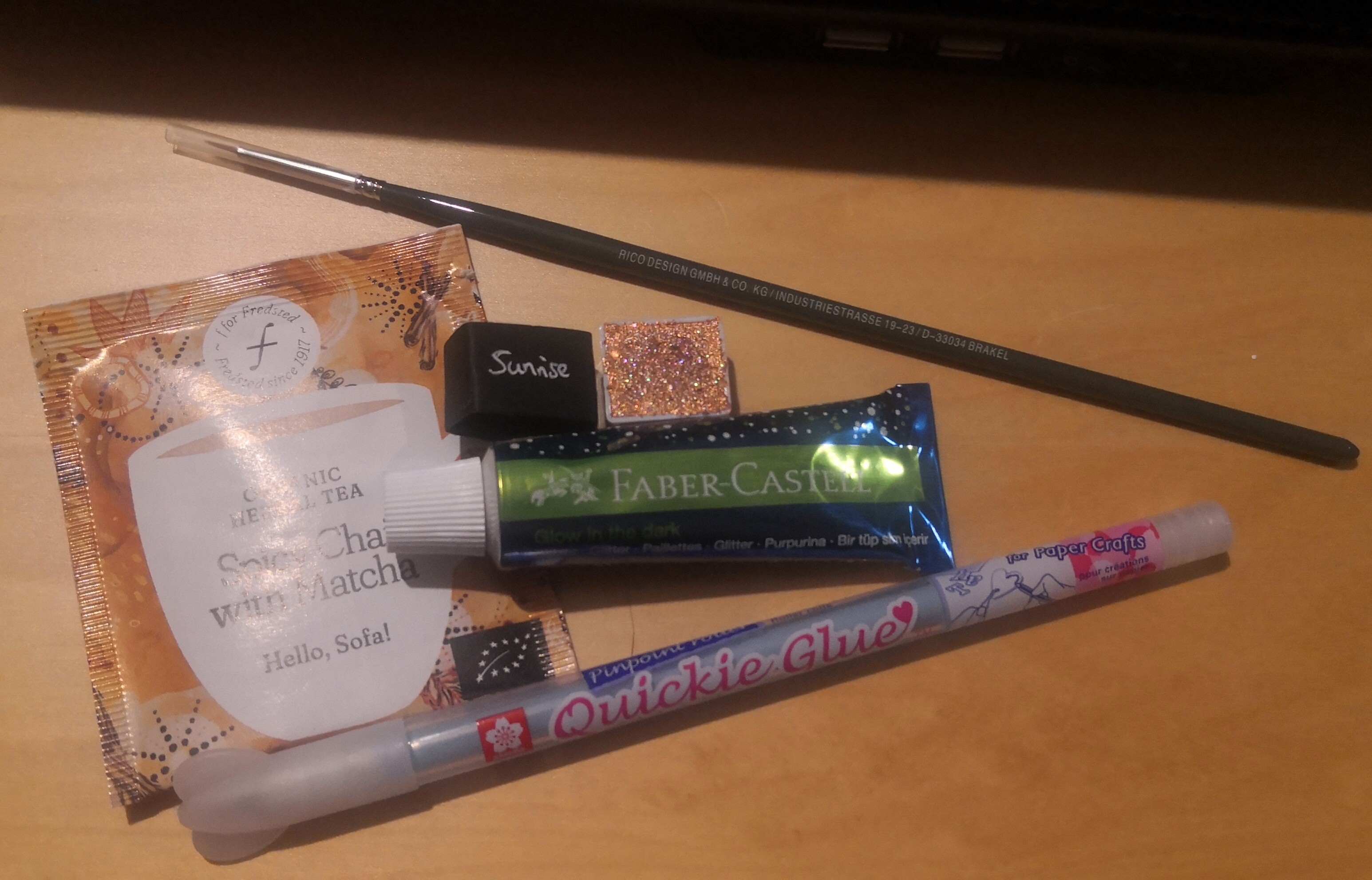 Die leckeren Lindts schaffen es zur Zeit nicht mehr mit aufs Bild weil ich mal wieder zwei kleine, kranke Piranhas daheim habe die alles wegfuttern wollen… Ich musste schon diverse Aquarellnäpfchen aus Mündern retten (immerhin noch eingepackt)