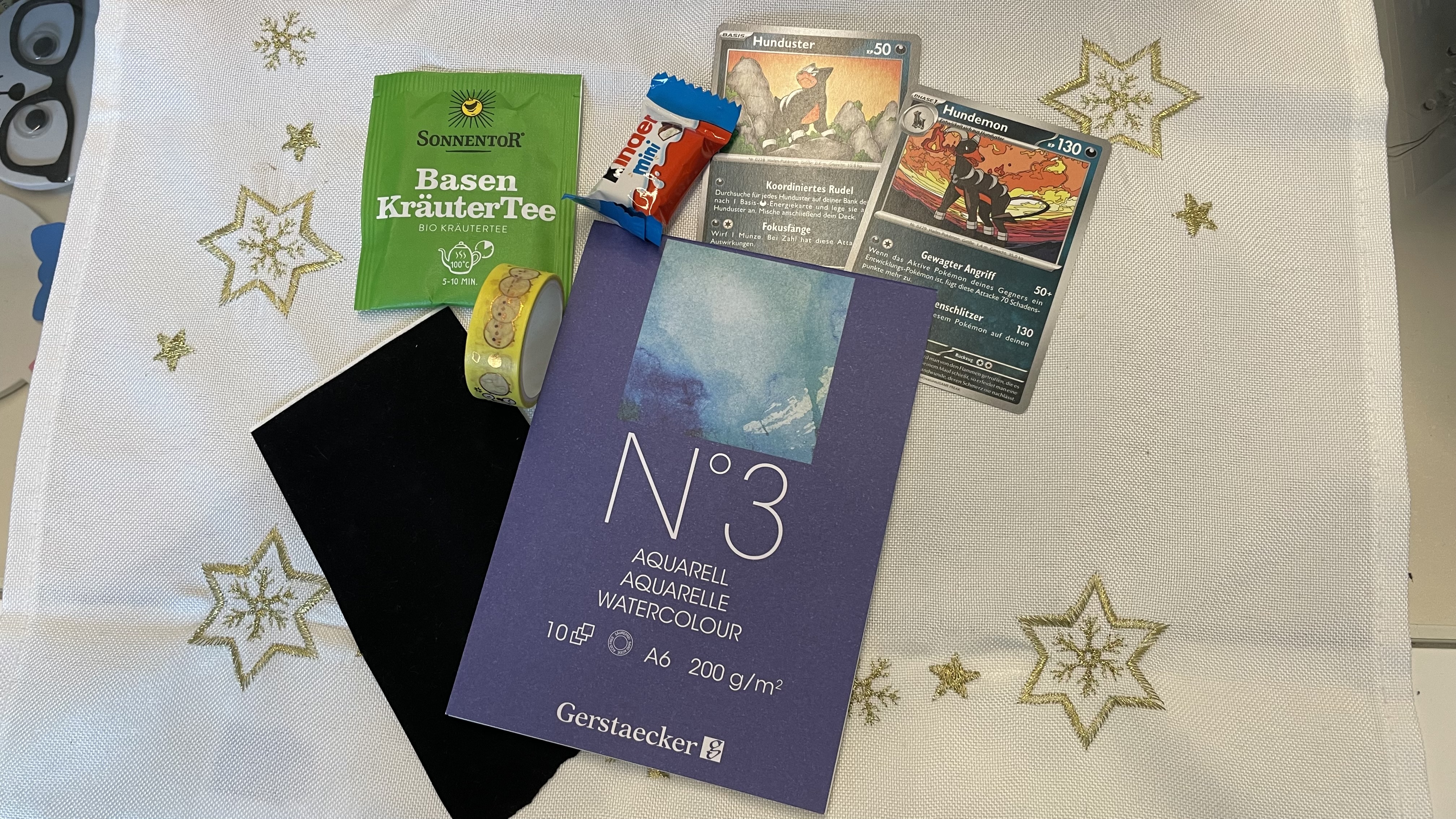 vielen lieben Dank, dass du dir die Mühe gemacht hast! Am 24. Gab es eine Postkarte meines Wichtels, die gefällt mir auch super, ich liebe solche Drucke. Und dahinter war die absolute Highlight Kakao, ich war total baff, ich hatte gar nicht erwartet, dass im Kalender 2 Karten sein werden und schon gar nicht, dass ich eine bestickte Kakaokarte bekommen werde. Super schön geworden! Am liebsten hätte ich diese Stickereien als Bettwäsche oder so - auch wenn das natürlich utopisch viel Arbeit wäre. Der 24. enthielt auch einen Markerblock, den kannte ich noch gar nicht, bin aber gespannt ihn auszuprobieren.