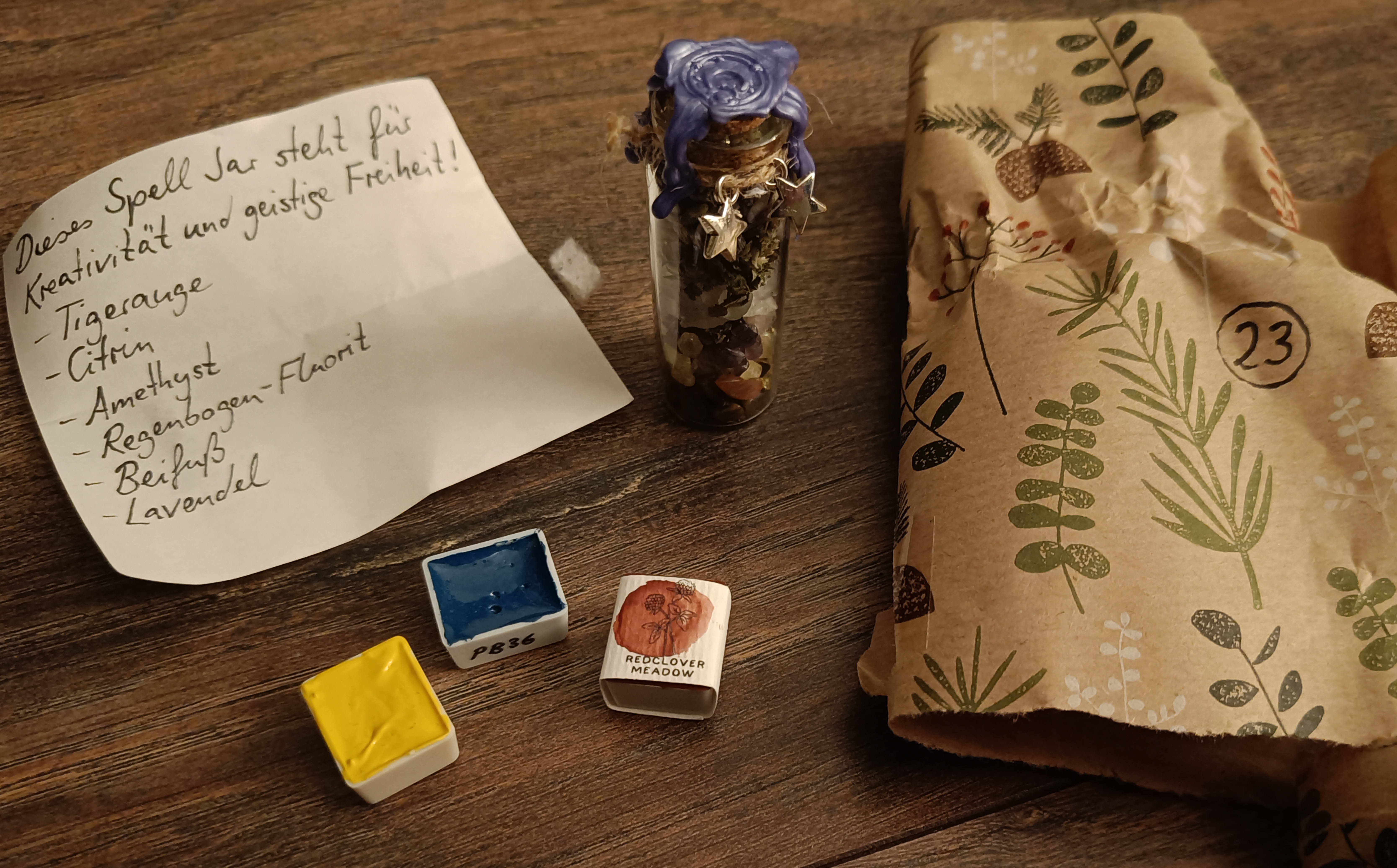 Und so wie ich das verstanden habe, hat @CaitlynMurphy auch etwas beigesteuert, vielen lieben Dank dafür :) denn mich hat noch ein zweiter halber Kalender erreicht, den öffne ich aber erst ab dem 1.1., weil ich dann diesen Luxus theoretisch 3 Türchen am Tag zu haben, doch lieber noch verlängert habe anstatt alles auf einmal zu haben.