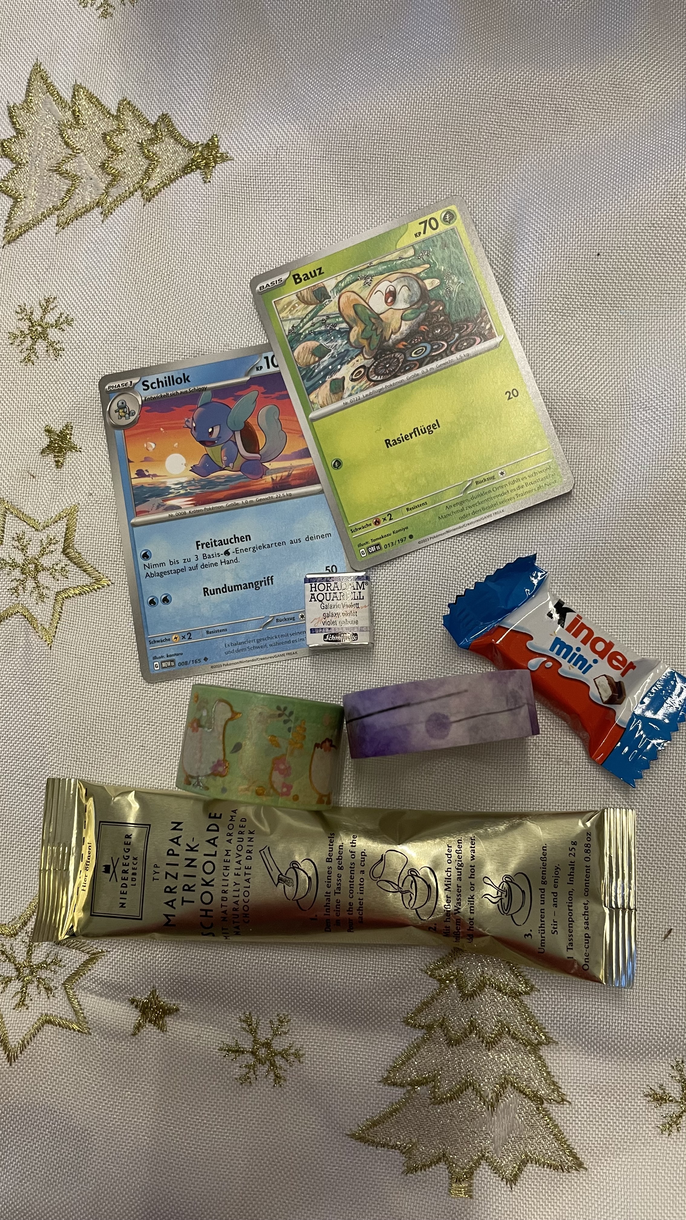 Tag 10 war leider etwas ein Unfall. Die beiden Pinsel haben die Verpackung nicht wirklich gut überlebt und sind dementsprechend verbogen gewesen. Bisher habe ich noch keine Energie gehabt, einen Rettungsversuch zu starten leider. Und das zweite war leider, dass auch die dort enthaltene Süßigkeit bereits im September abgelaufen war. Und ich muss sagen, dass hat meine Begeisterung für den Kalender dann doch erstmal einbrechen lassen, dabei sind danach echt einige tolle Türchen gefolgt.