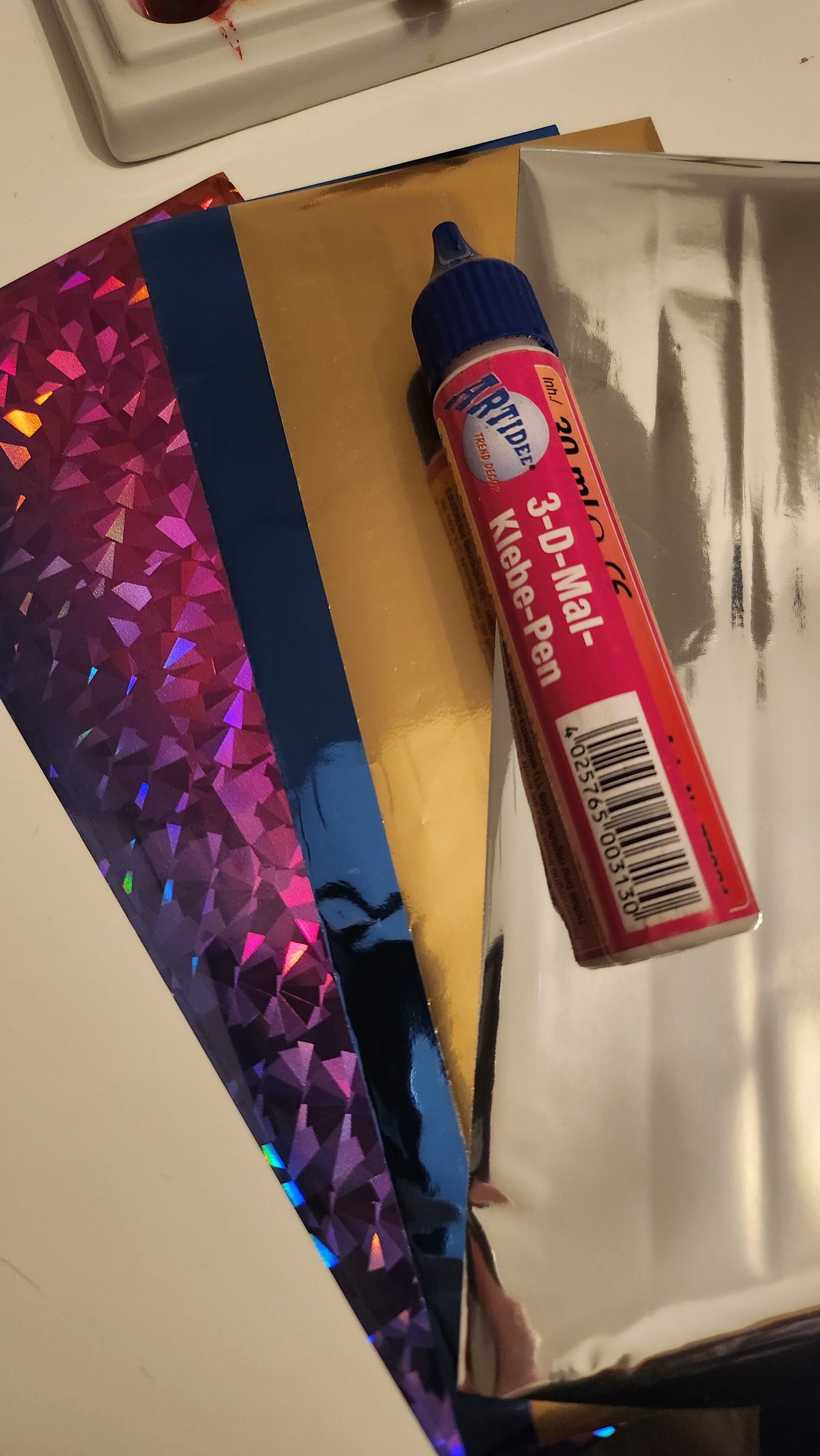 Für mich gab es gestern und heute zwei Glitzergelstifte in den Farben grün und gelb/orange und einen weiteren floureszenten Copic Sketch in Violett <3