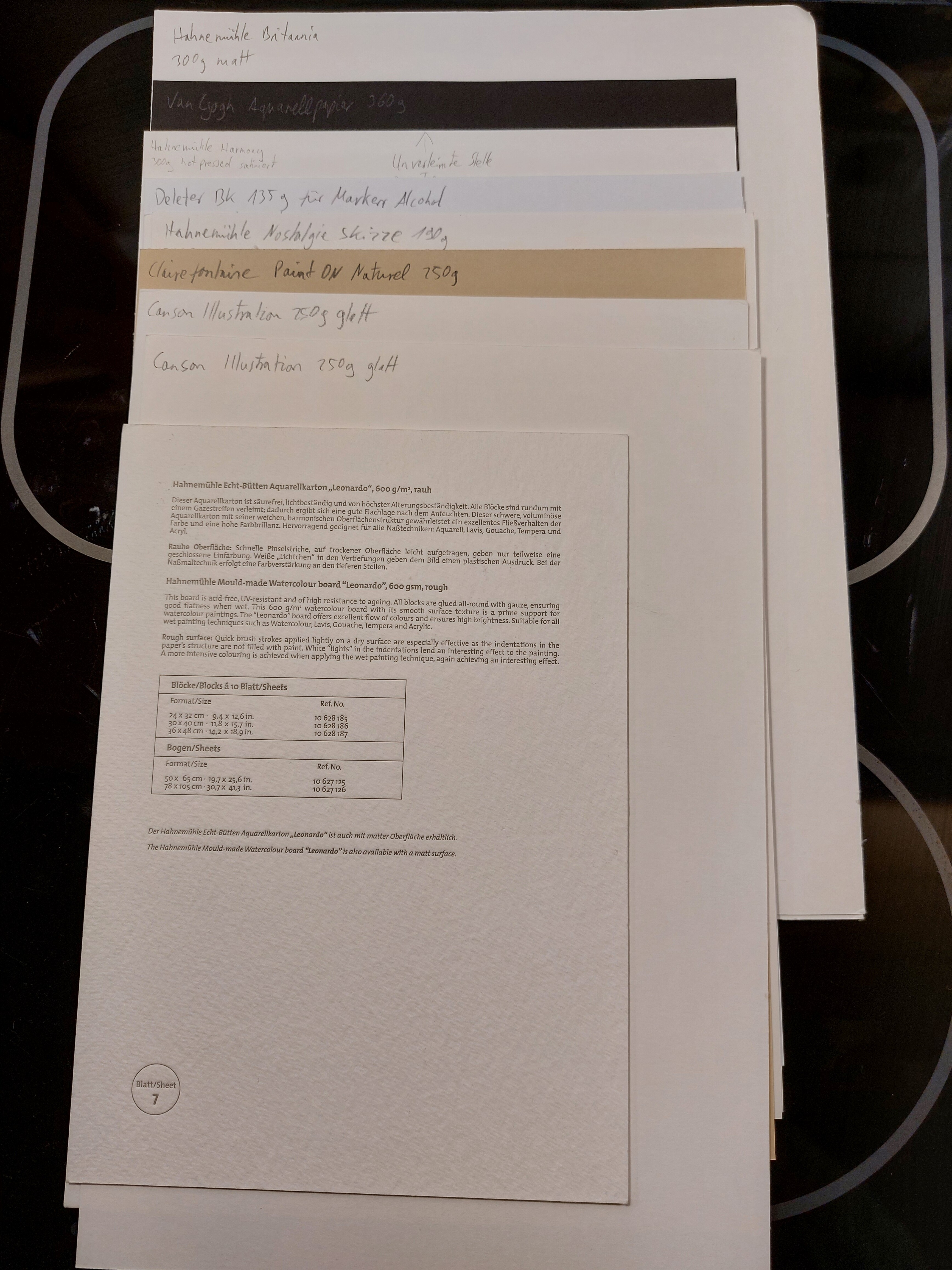 Der Hintergrund sieht auch interessant aus, glaube das könnte Acryl pouring sein.Gestern gab es dann eine Menge toller Papierproben. Bin schon gespannt die auszuprobieren. Besonders interesant finde ich das oberste, das ist wirklich richtig stabil.