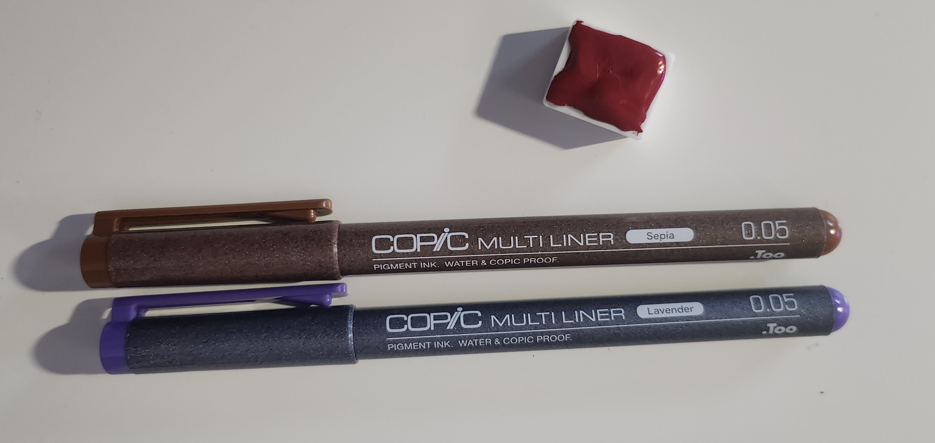 Copic Multiliner in Sepia und Lavender. Die werde ich auf jeden Fall verwenden - auch noch in 0,05 wie ich es mag