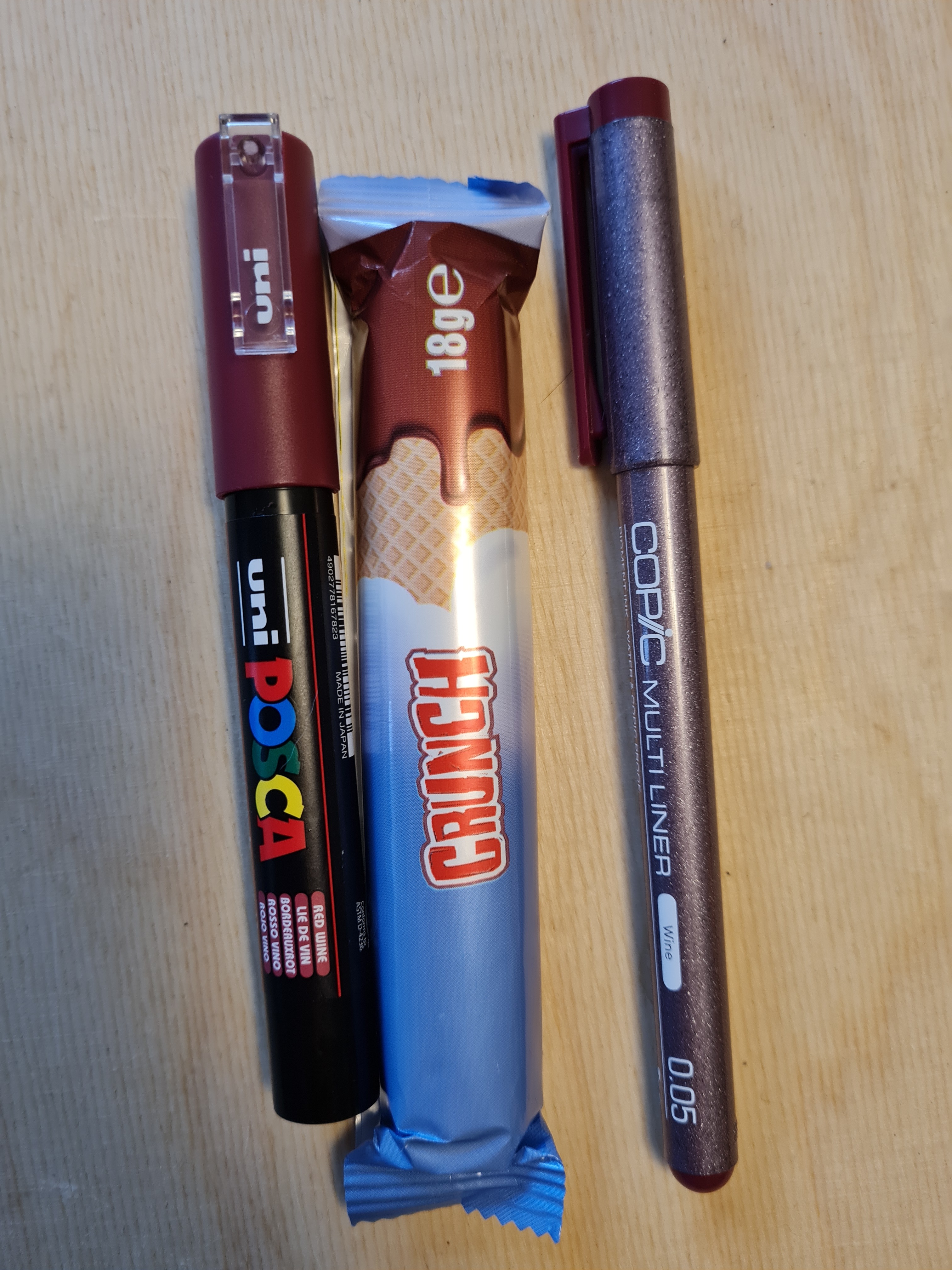Zum einen gab es einen wunderschönen Posca-Farbton, ich liebe ihn! Ich denke auch, er passt sicher super zu meinem apricotfarbenen. Und farblich passend einen weinroten Copic Liner. Und auch den Liebe ich jetzt schon! Ich habe letztes Jahr den gleichen Farbton als 0,1er im Adventskalender gehabt und liebe ihn sehr, line aber tatsächlich gerne mit beiden Stärken, der ist also eine echt prima Ergänzung, vielen Dank!