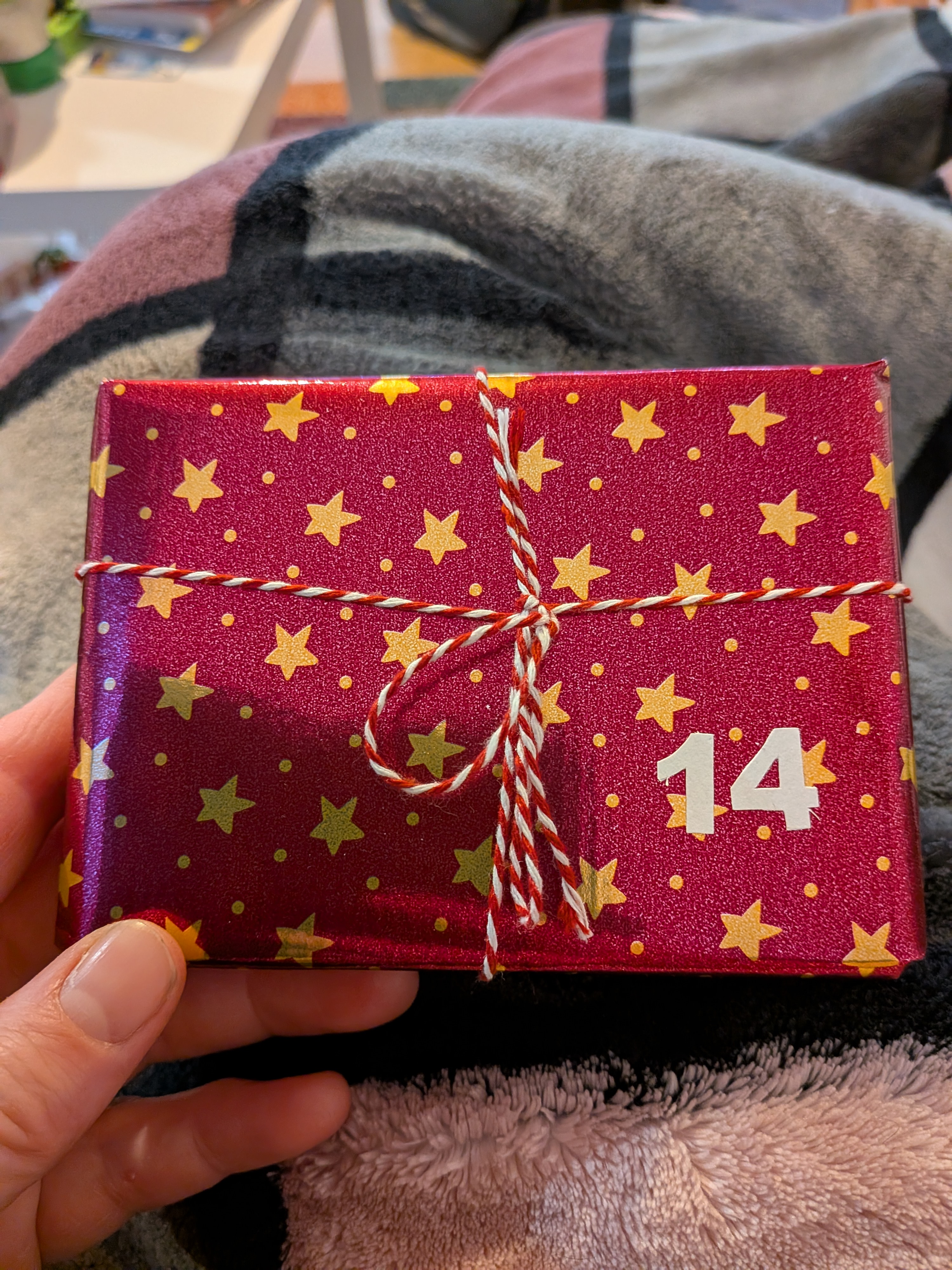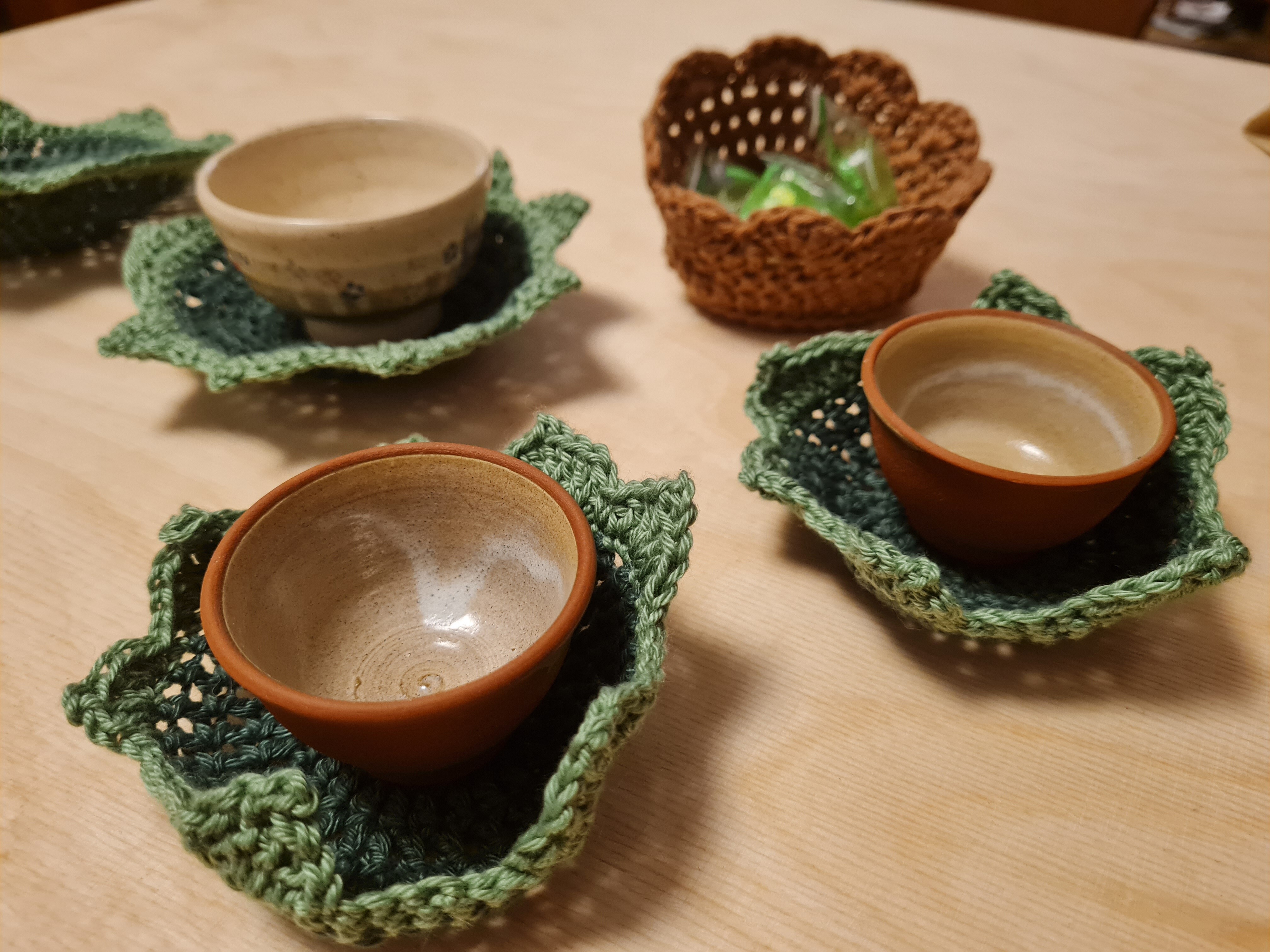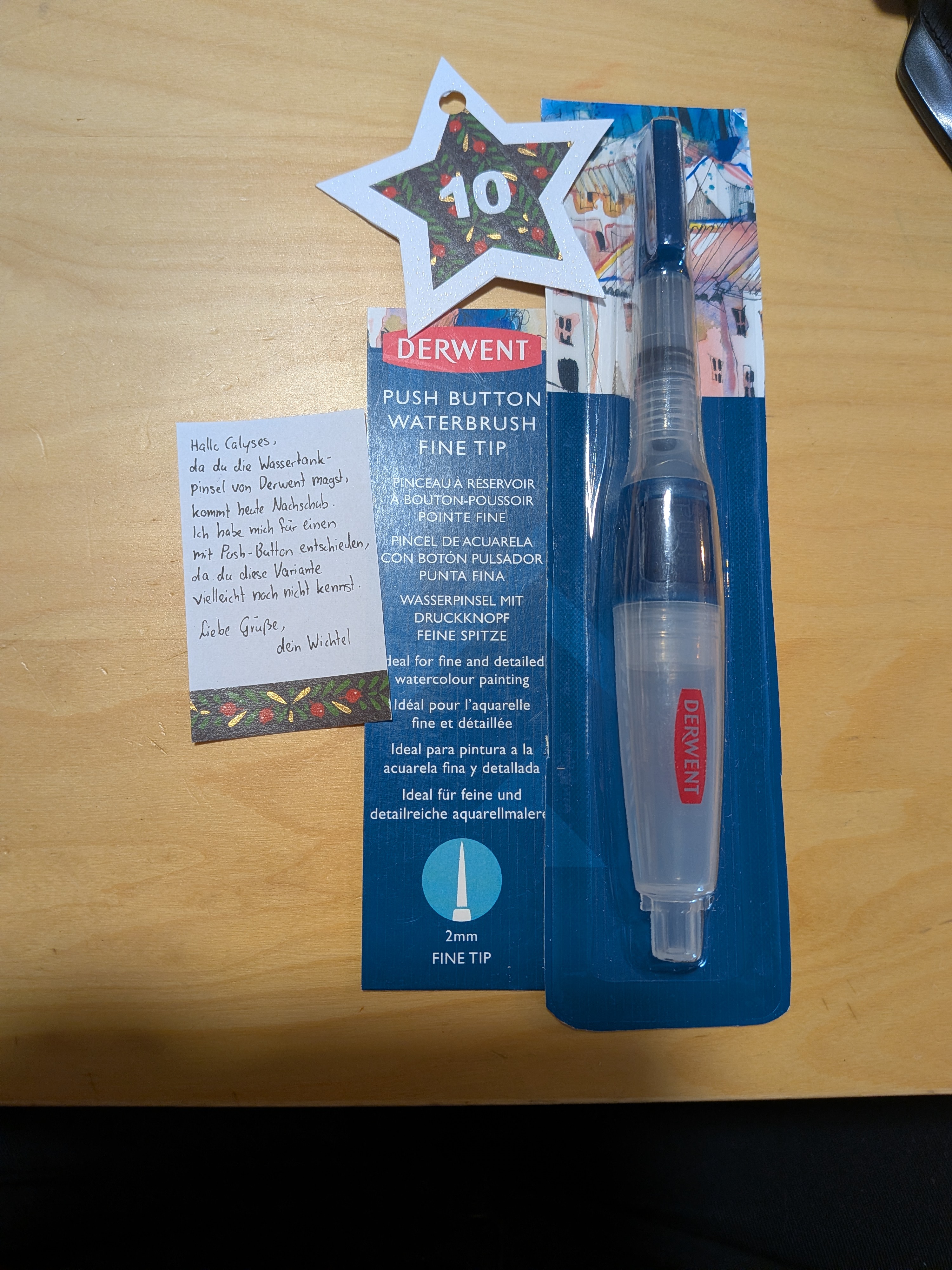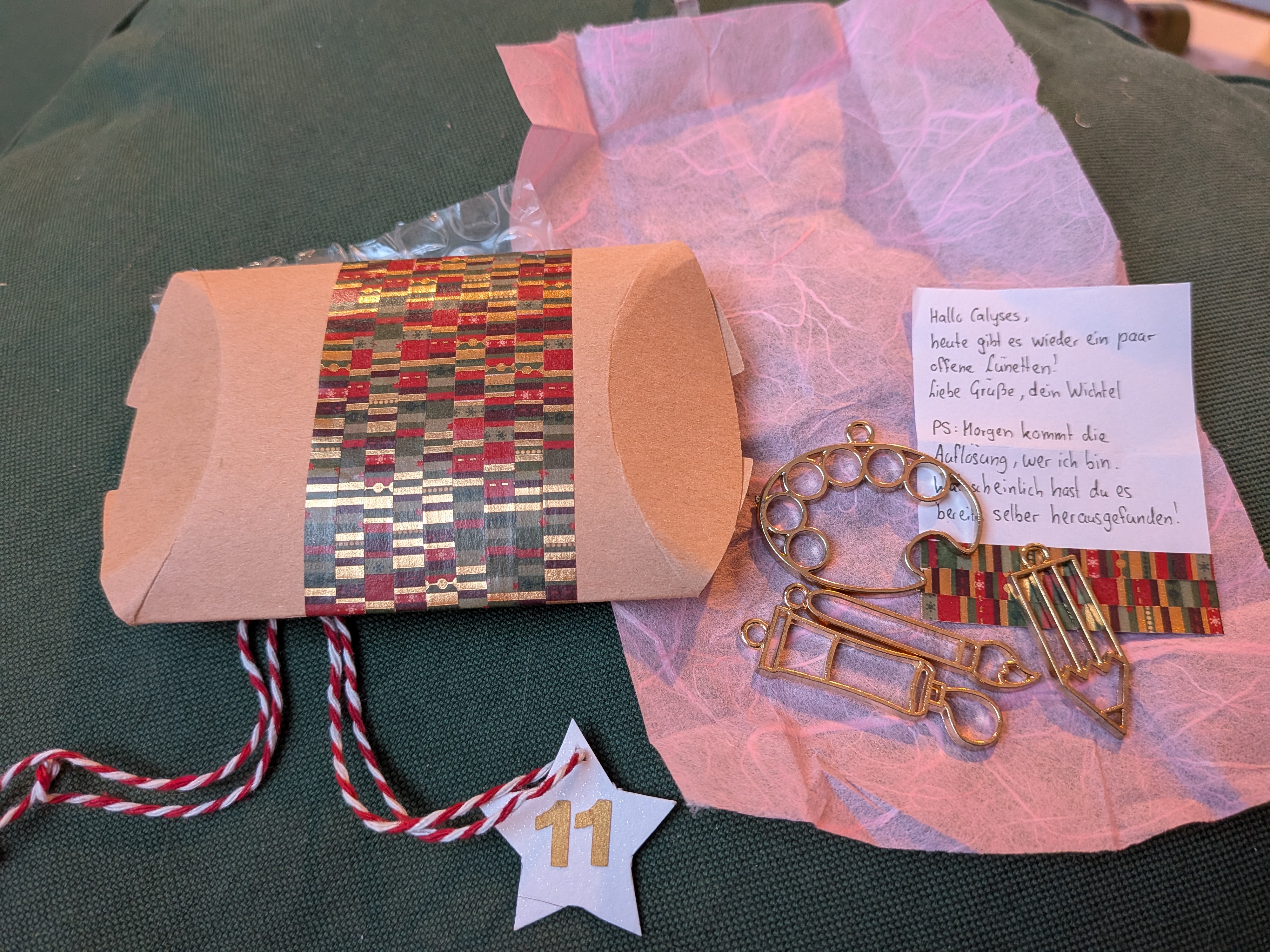 , die ich zum Basteln benutzen kann - sowie den Hinweis, dass weitere davon (vermutlich bereits “verbastelt”?!? Ich bin gespannt!) weiter hinten im Kalender zu finden sein werden. - Und es gab einen getöpferten Läufer für das Sammel-Set!