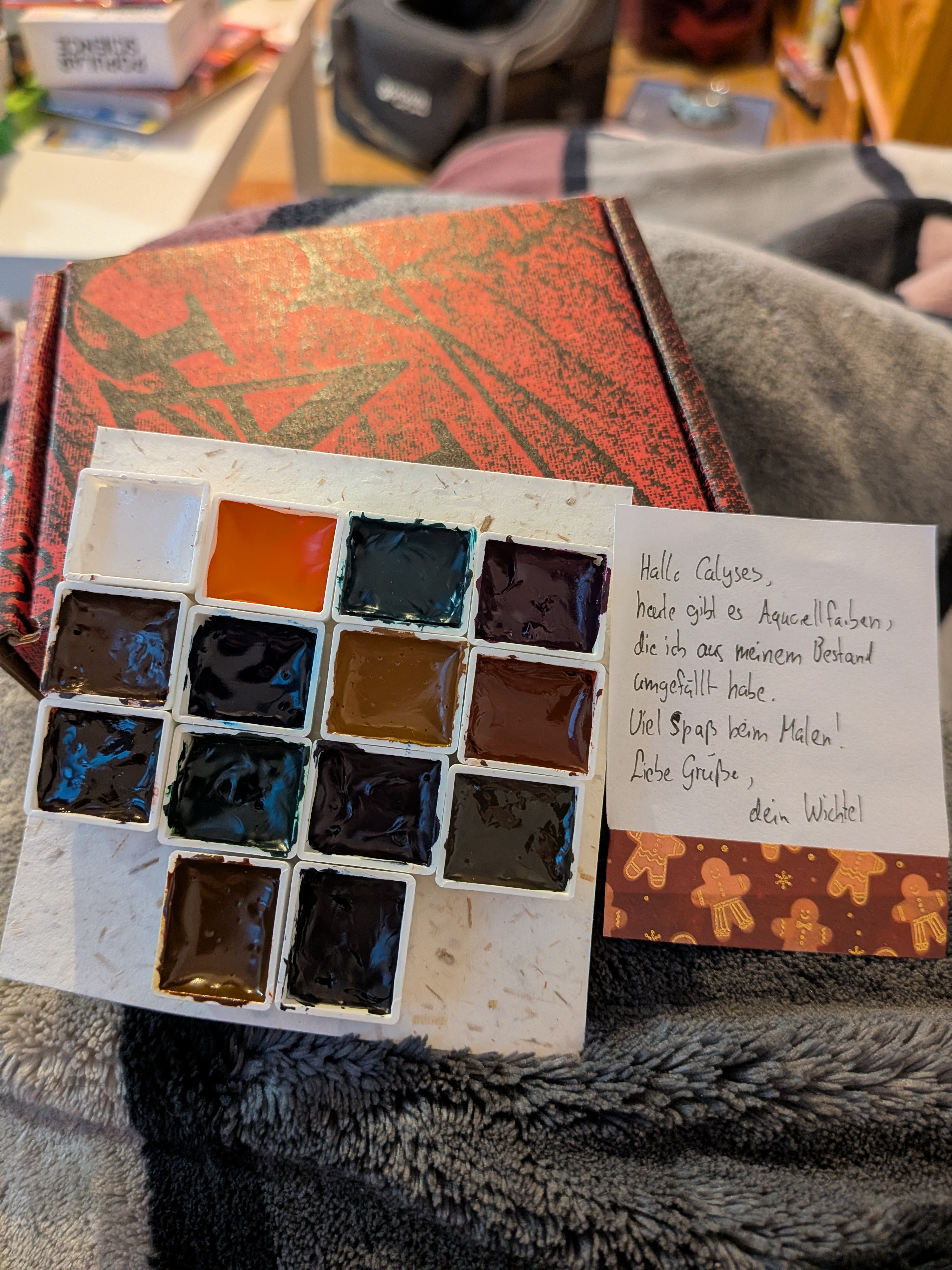 Meine Sammlung wächst - ich brauche definitiv einen “Tarabel-Kasten”. XD Die Farbtöne sind echt wunderschön! - Weiterhin hatte Wichtelmama @Semja (die ja dank der tollen Dev-KaKAOkarte ohnehin enttarnt ist) für mich eine kleine Sammlung von durchbohrten (!) Mini-Holz-Schachfigürchen