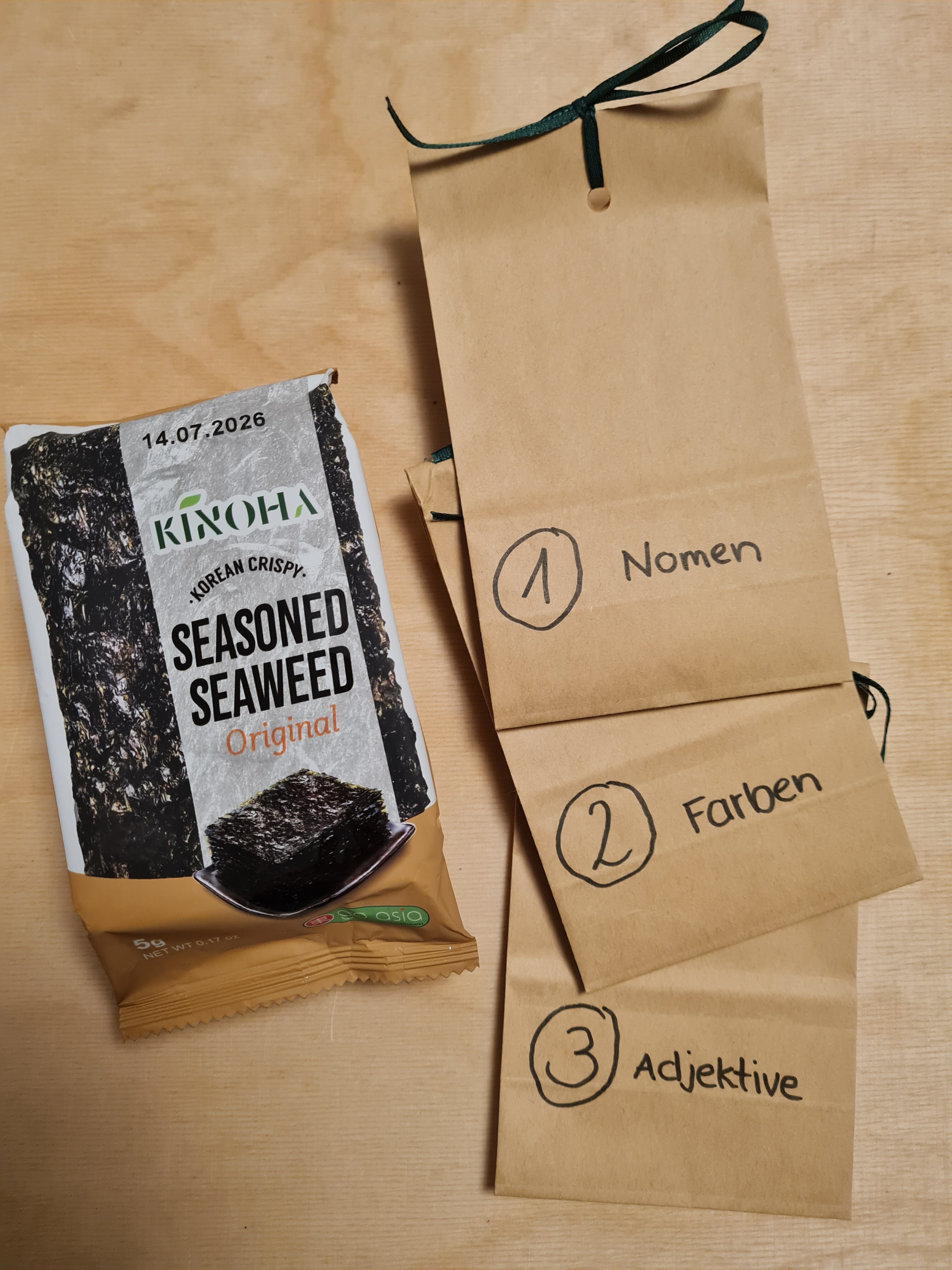 Ich glaube, Ich hatte es noch nicht erwähnt, aber ich habe ein Glas, aus dem man jeden Tag ein Motiv ziehe, das auch auf einem der Päckchen zu finden ist. Wie es der Zufall so will, habe ich heute ein zweites Paket Nori-Snack ausgelost, heute wird es echt Zeit sie zu probieren!