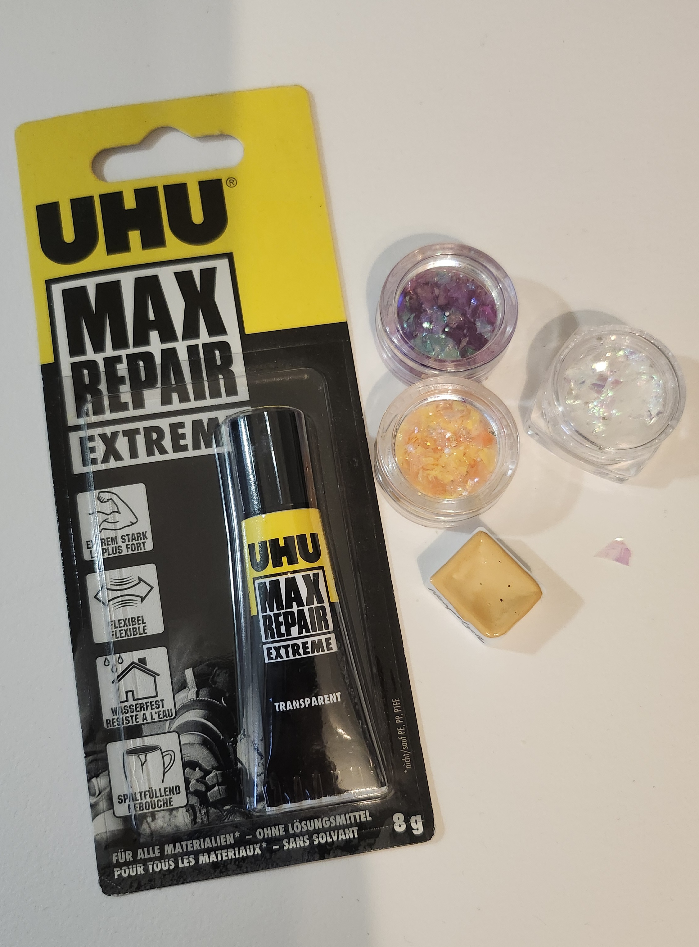 Ein Kleber für Schüttelkarte + wunderschönes Schüttelmaterial, das mich an Feenstaub erinnert!