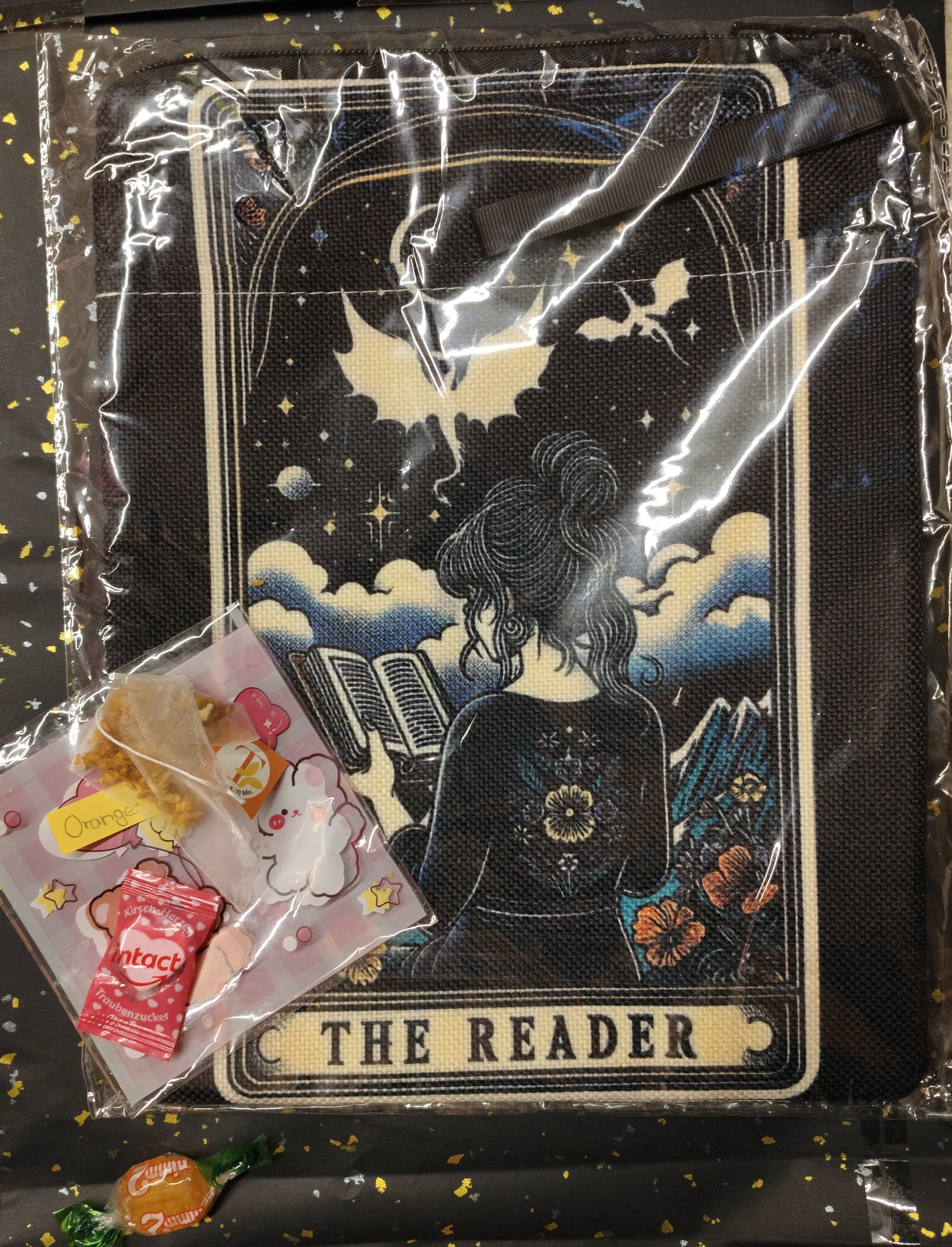 Heute habe ich eine Büchertasche bekommen. Ich habe zwar schon eine, dafür ist diese hier aber größer, also ganz praktisch, wenn das Buch mal etwas größer ist ^^