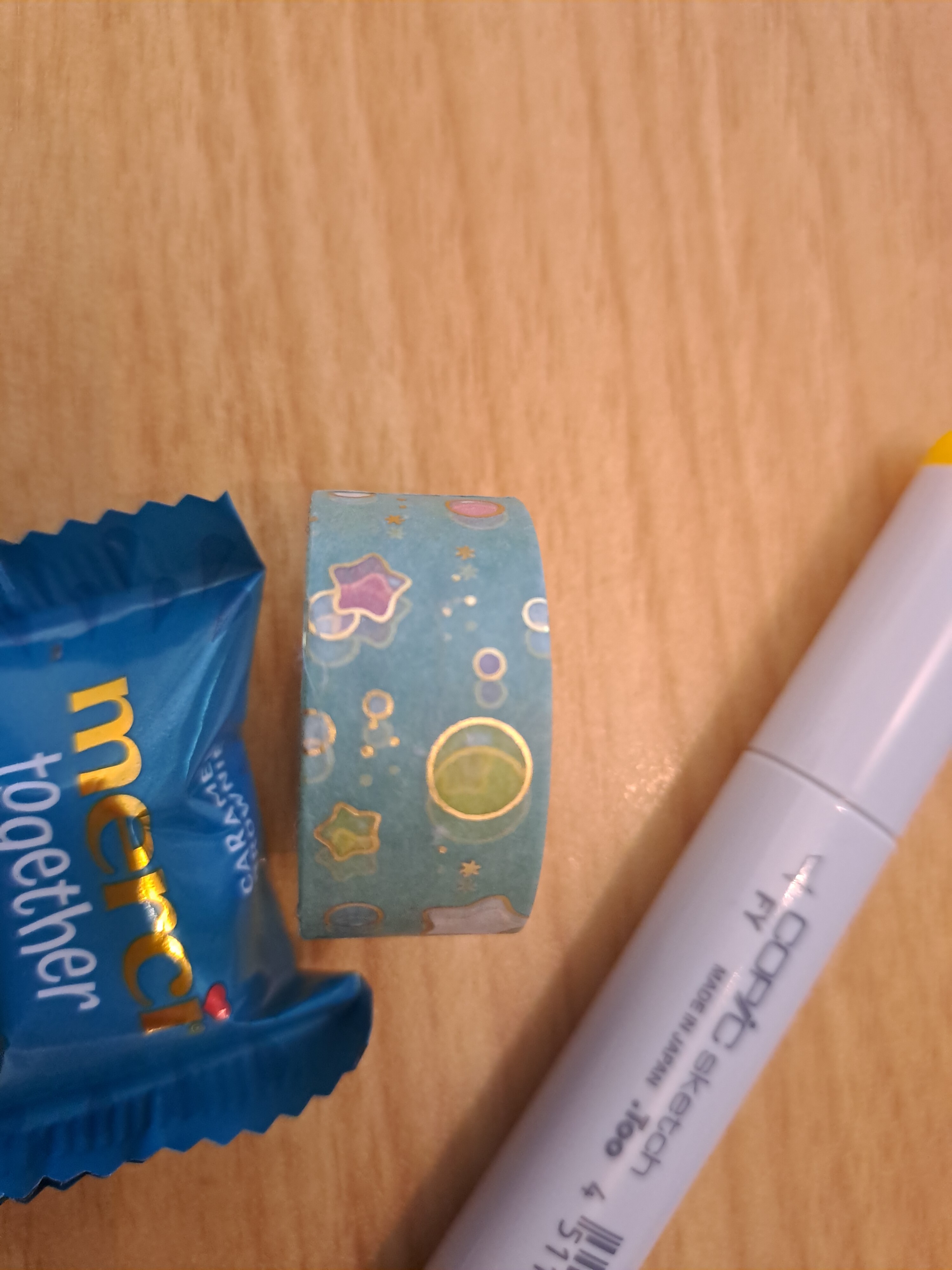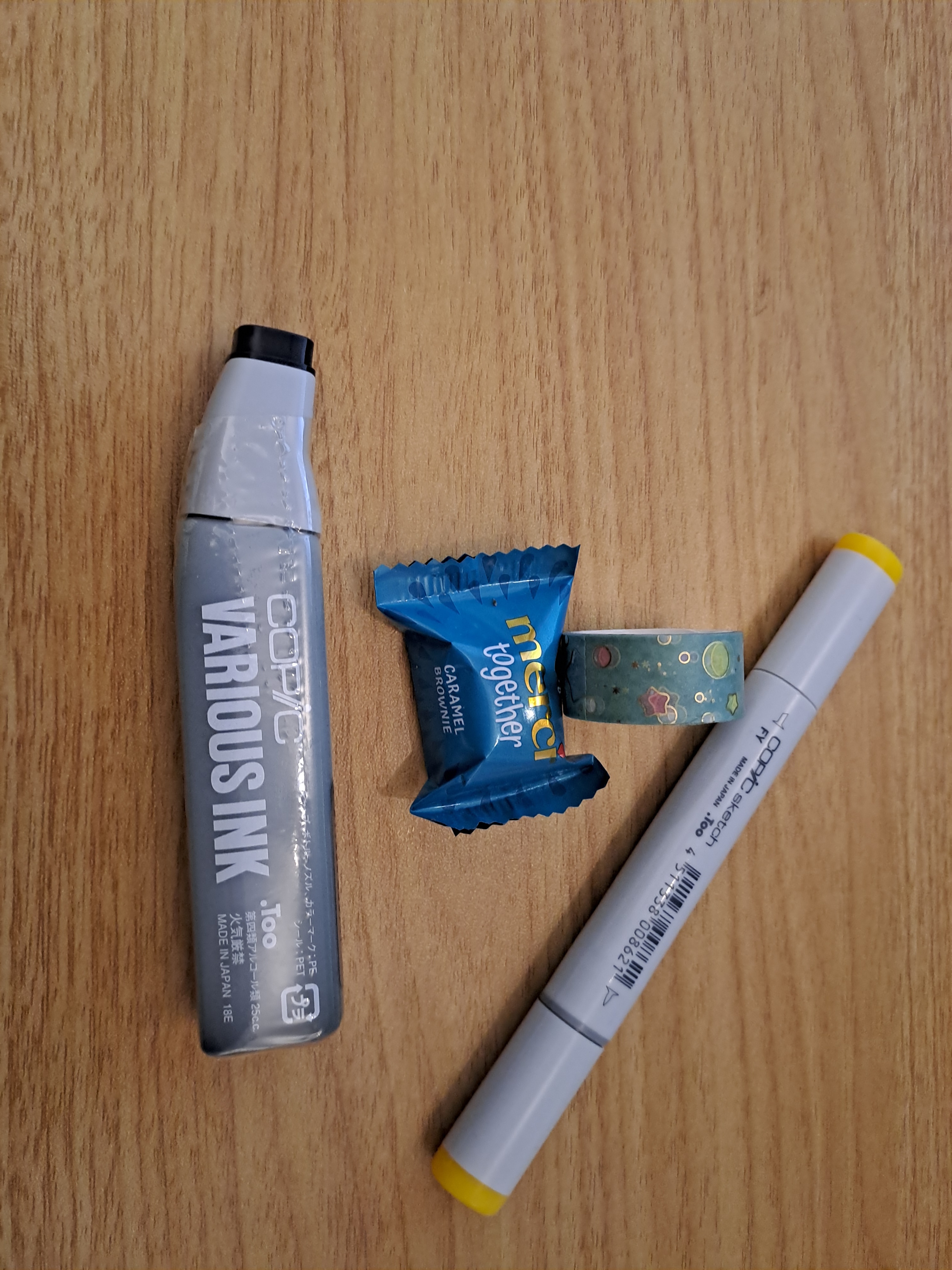 Ich habe einen weiteren floureszenzen Copic in gelb erhalten mit leckerem Naschi, ein richtig hübsches Washitape und heute einen Nachfüller N8 für meine Copics