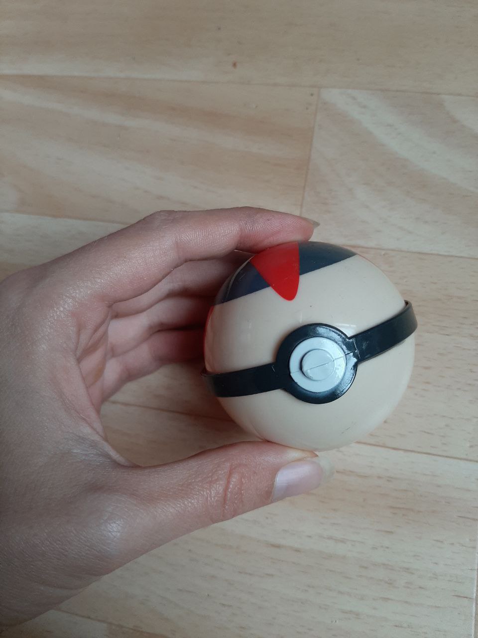 Kleiner Pokeball, kann man aufmachen, waren mal so kleine Pokemon Figuren drin.