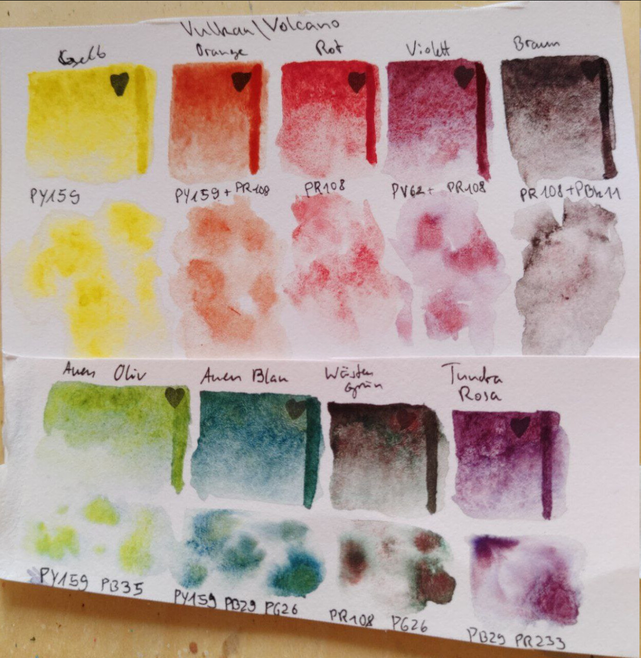 Zur zweiten Frage: Das ist sehr viel persönlicher Geschmack. Ich selbst hab eine Mischung aus verschiedenen Marken. Schmincke (Horadam) ist hier recht gut zu bekommen und macht den Hauptteil meiner Farben aus - kann mich nicht beschweren, die Farben sind toll und die meisten davon relativ “glatt”, also ohne viel Struktur/Granulation beim Trocknen. Daniel Smith ist teurer und evtl. etwas schwerer zu bekommen, da das ein amerikanischer Hersteller ist, aber auch echt tolle Farben! Die haben besonders viele granulierende Farben, und ich finde sie haben generell etwas mehr “Eigenleben” als Schmincke (Schmincke ist sehr brav xD).