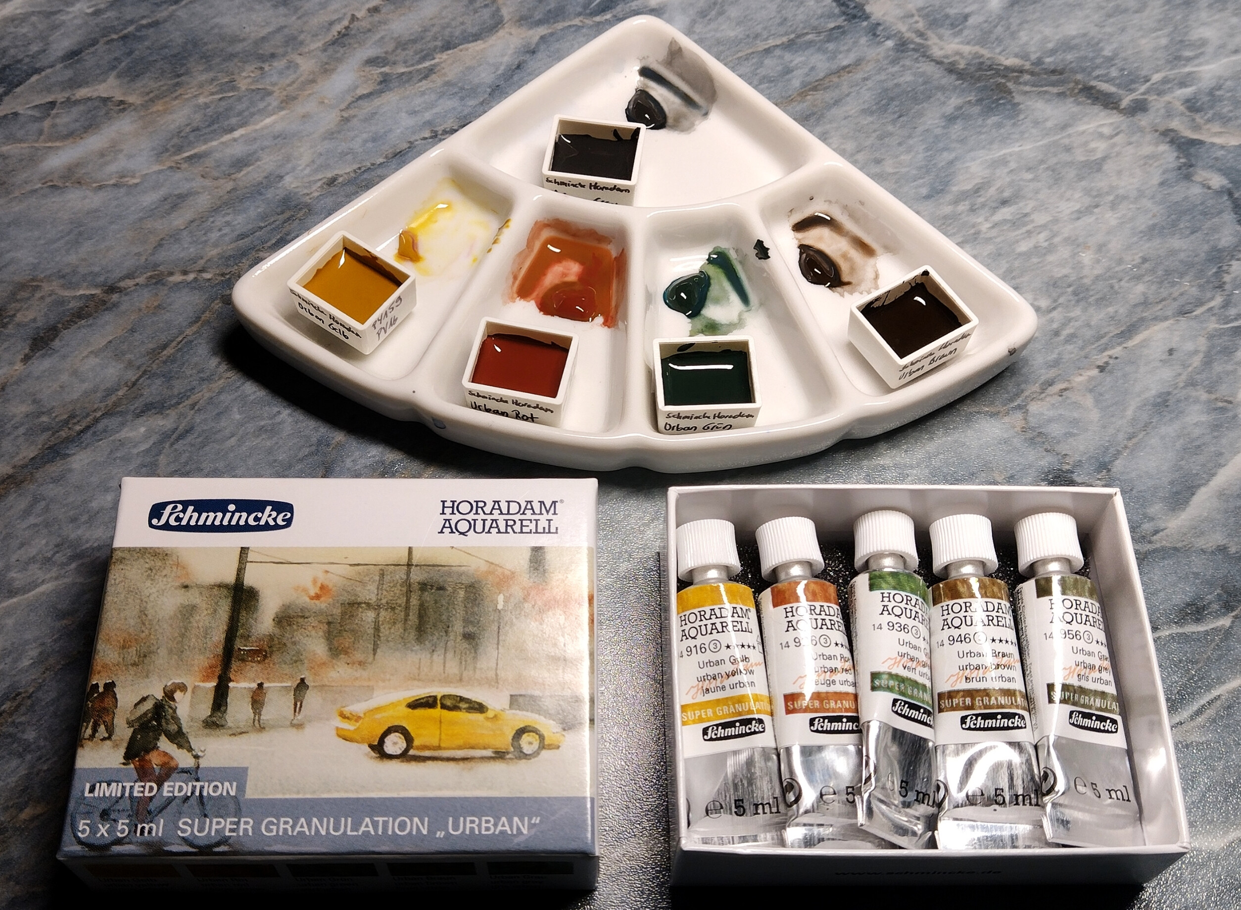 Schmincke Horadam hat ein neues Supergranulierendes Set namens “Urban” mit 5ml Tuben. Es handelt sich scheinbar um eine “Limited Edition”, kann also sein, dass es ähnlich wie das Haze Set nicht in das Standard Sortiment aufgenommen wird.