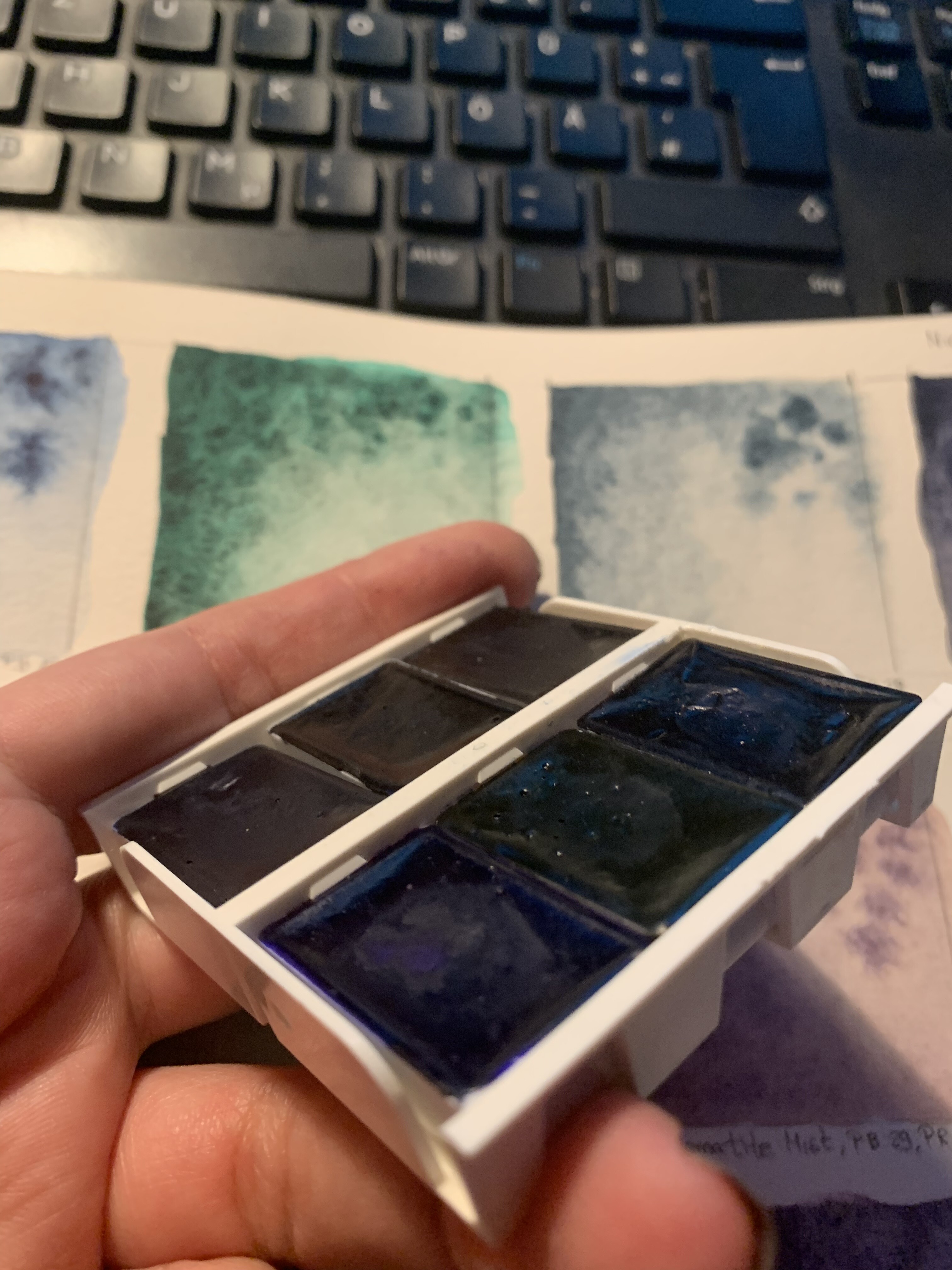 Ja, sammelwütig bin ich da auch. xD Gerade Aquarellnäpchen lassen sich so schön in großer Anzahl sammeln, weil sie nicht so viel Platz wegnehmen. (Selbst die Tuben, die ich habe, sind auch relativ platzsparend im Vergleich zu anderen… Hobbys.)