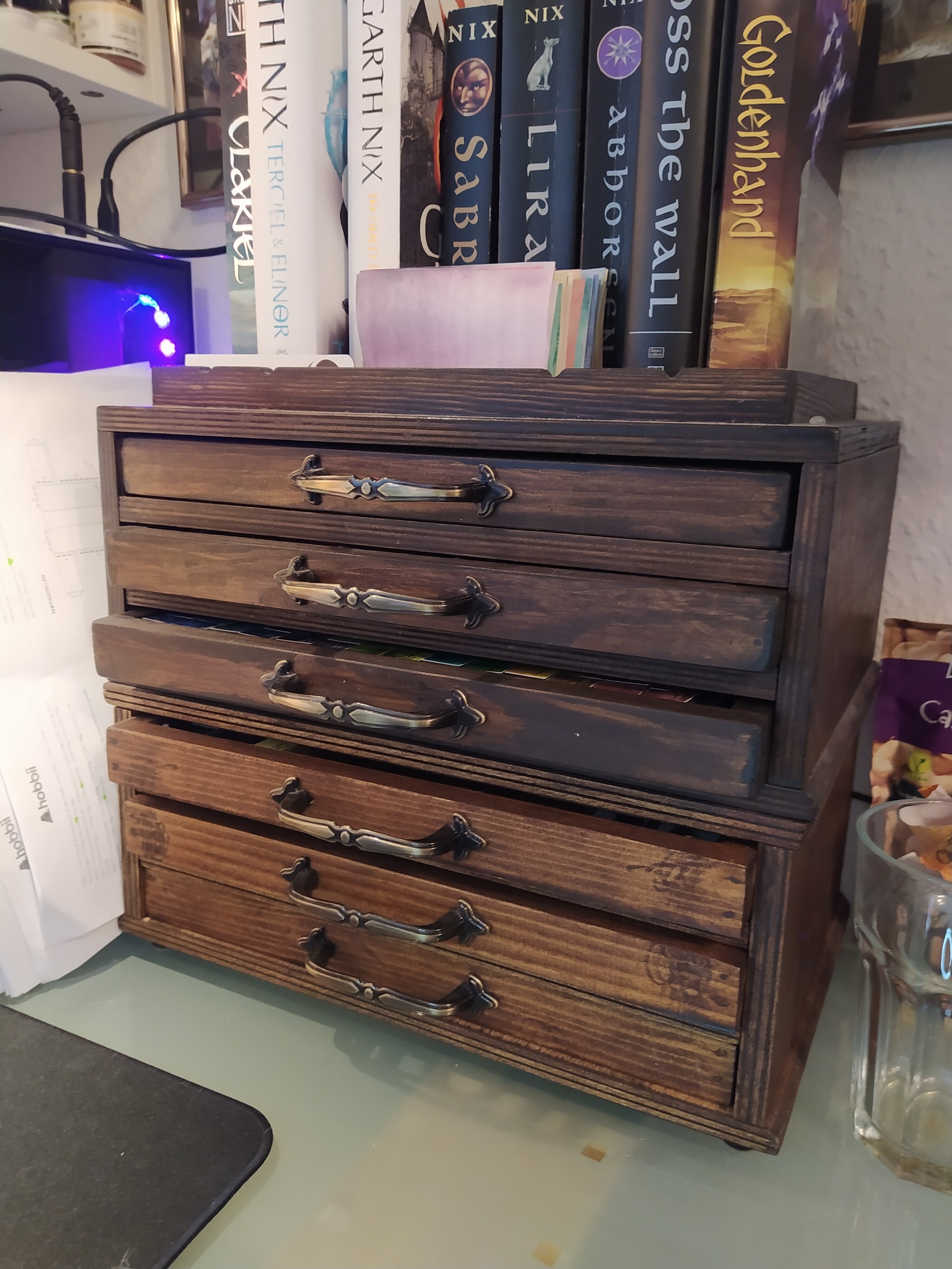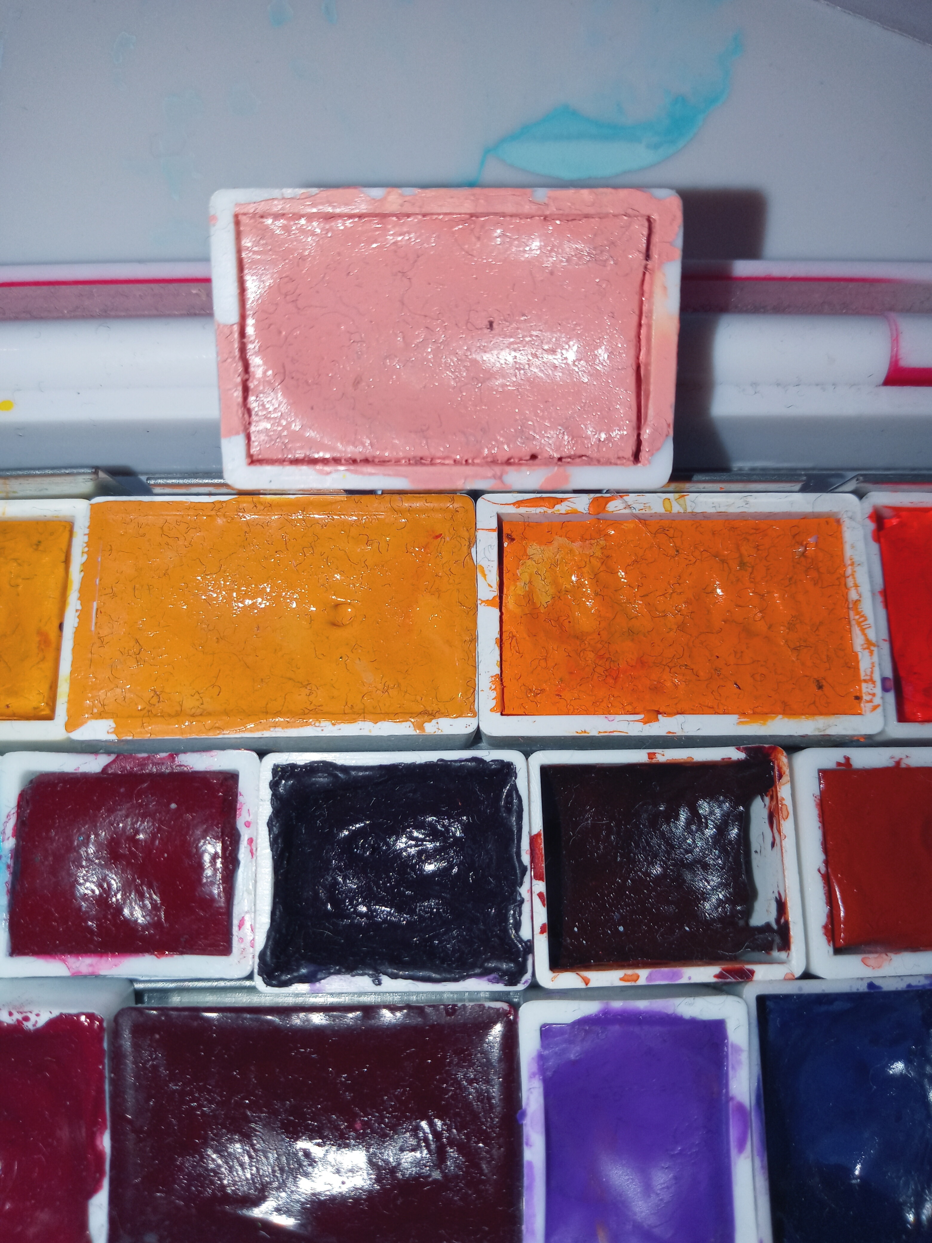 Ich hab mittlerweile einen Aquarellschrank, den mir mein Vater gebaut hat XD Ich hatte nämlich auch keinen Platz mehr und ich hab alles immer ganz gerne an einem Ort. Da ich aber andauernd selbst Farben herstelle und dadurch es ja nie aufhört, dass ich neue Farben dazu bekomme… naja XD Deswegen musste ein Schrank her. Ich mach mal fix ein Foto… Eine Sekunde.