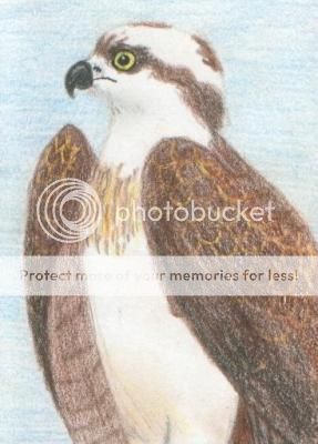 Bei meinem Fischadler war leider nicht mehr allzu viel zu retten, weil ich mit den Stiften damals sehr fest aufgedrückt habe, sich die Farben also nur schwer radieren, bzw. übermalen ließen. Wenigstens im Hintergrund konnte ich noch ein bisschen was machen: