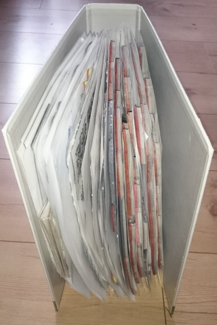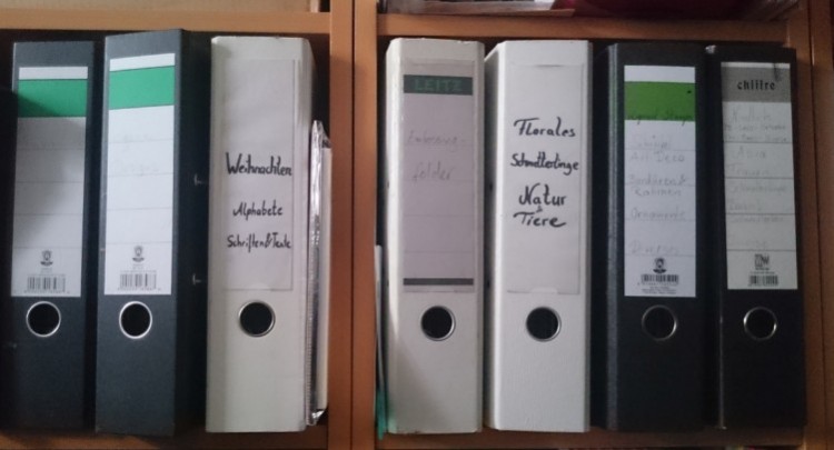 Schublade im Regal voller Bastelpapier