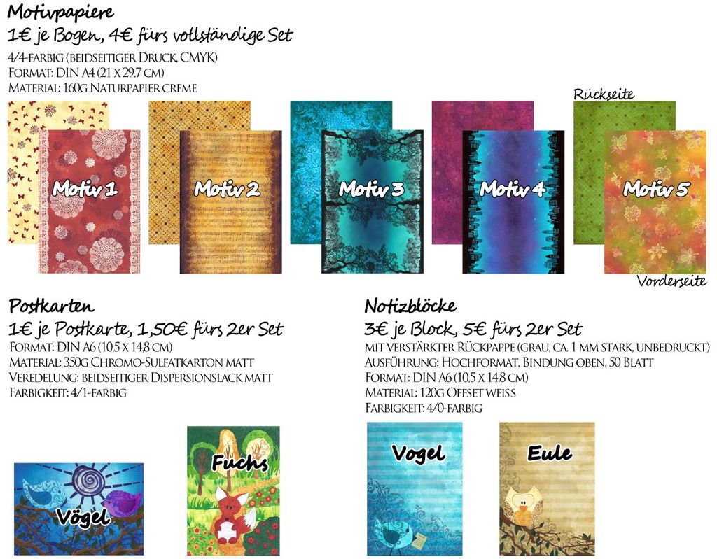 endlich bin ich dazu gekommen, meine Sachen, die ich schon auf der LBM dabei hatte, grafisch aufzubereiten, damit ich sie euch hier zum privaten Verkauf anbieten kann. Es handelt sich, außer bei der Papeterie, ausschließlich um Unikate.