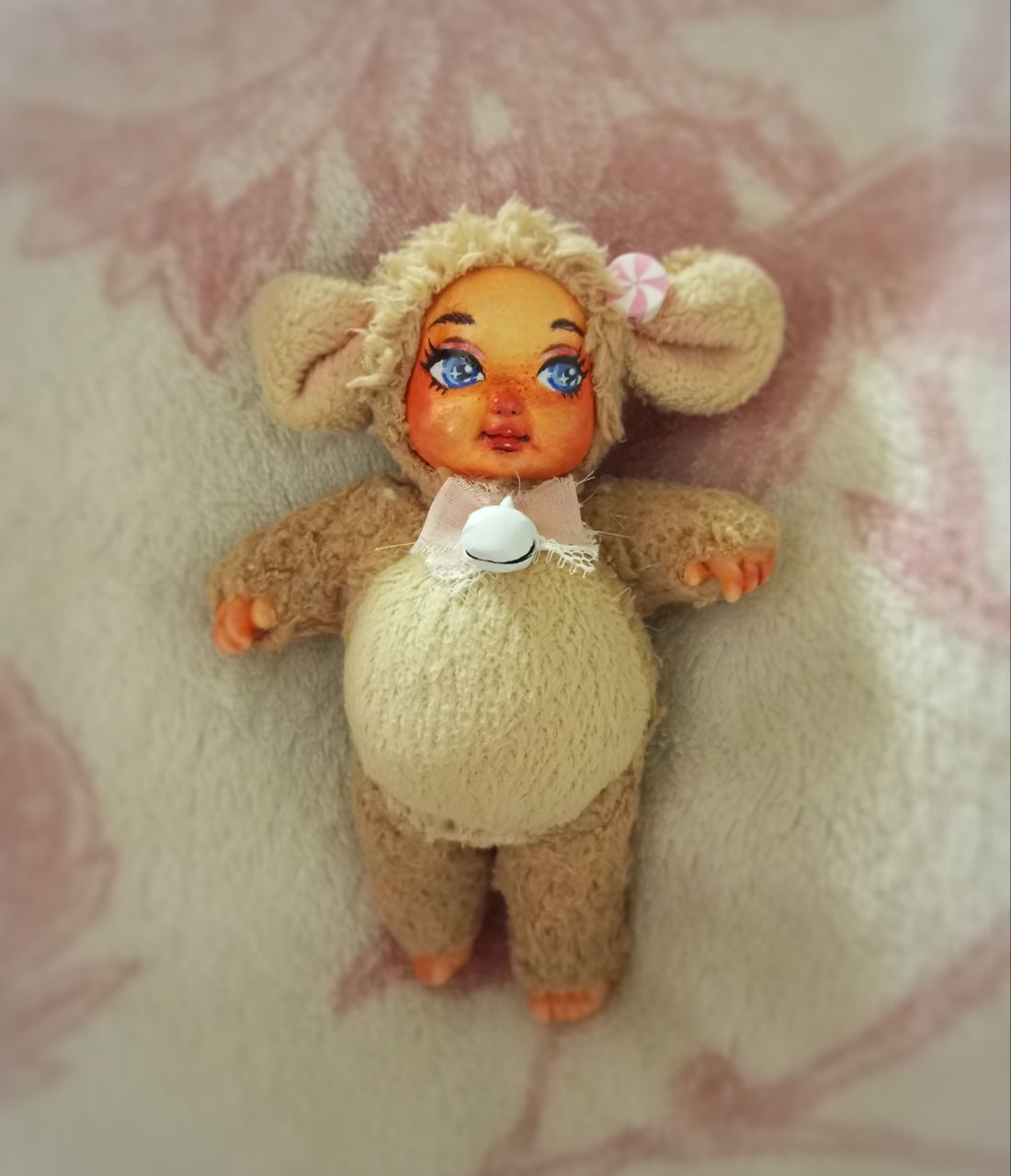 Puppenkopf für 20 Cent aus dem Second Hand Laden, Hände und Füße hatte ich noch über, Plüschstoff + Füllung war upcycling eines alten, leider ungeliebten Weihnachtselch der immer nur traurig in die Ecke verbannt wurde.