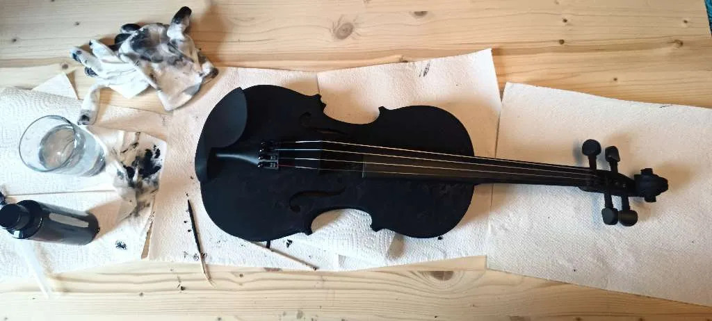 Geige (Status: habs mehr oder weniger geschafft, das Ding zusammen zu bauen, der Steg gehört noch abgeschliffen, dann kommt Bemalung und irgendwann hoffentlich auch drauf spielen oder so was ähnliches, denn ich weiß noch nicht, wie man das macht.)