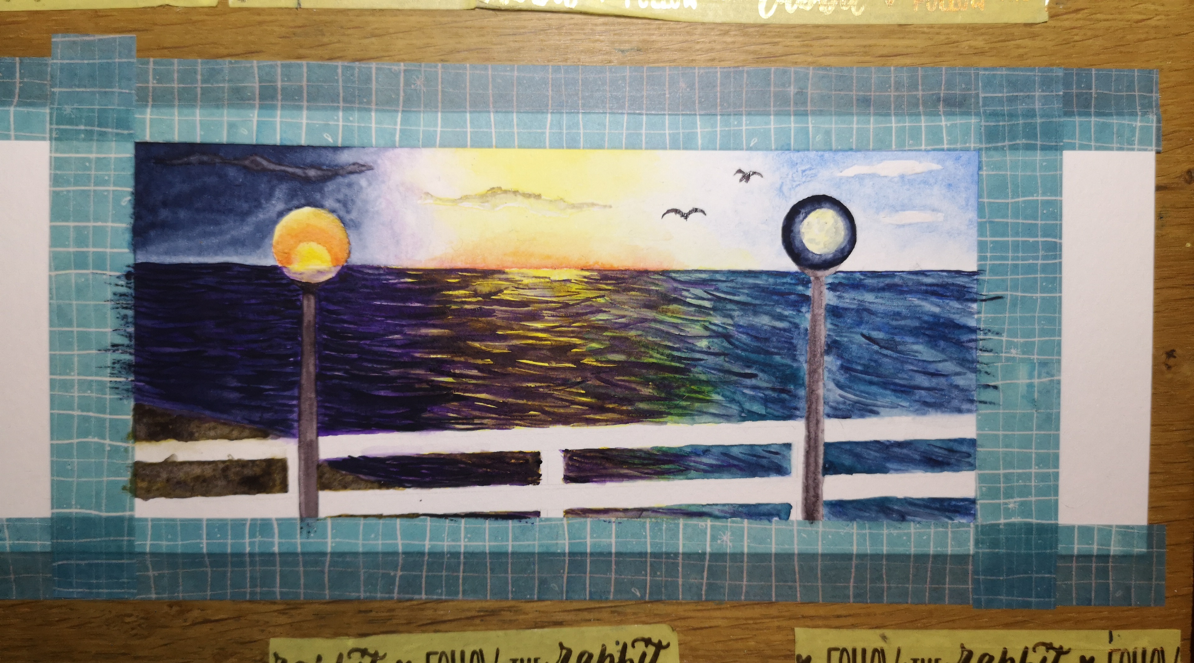Eine Karte hab ich vor einem Jahr schon angefangen, aber ich denke, die stampfe ich wieder ein, da ich nicht wirklich glücklich mit ihr bin und ich das Set auch gerne als etwas lockerere Schnelle aquarellkarten haben will, die nicht ZU sehr ins Detail gehen. Und die eine angefangene Karte war wieder eine Poster color Karte, an der ich schon viel zu viel Zeit verschwendet hab mit dummen Details und in dem maltempo würde ich nie ein komplettes Set schaffen, das muss schneller gehen. Abgesehen davon sieht die mir auch wieder zu erzwungen und nicht locker genug aus.