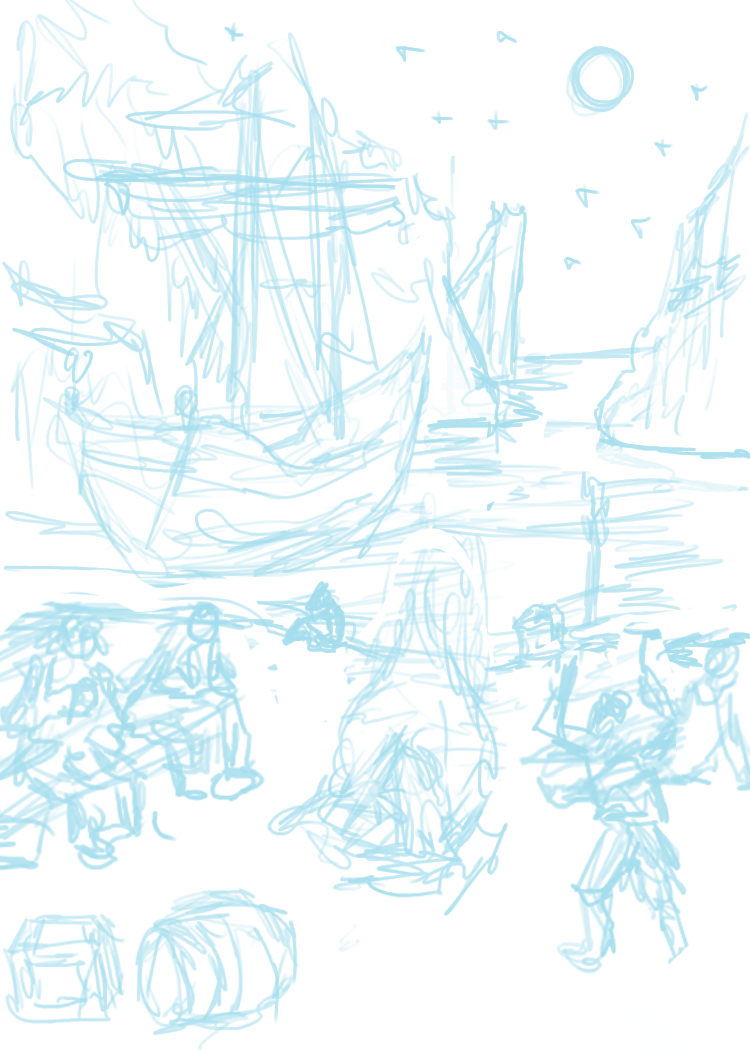 Ein paar Skizzen hab ich wie gesagt schon, aber das sind so richtig schlimme ideensammelskizzen ohne jegliche Referenzen gezeichnet, die sehen so schlimm aus, die will ich gar nicht zeichnen.