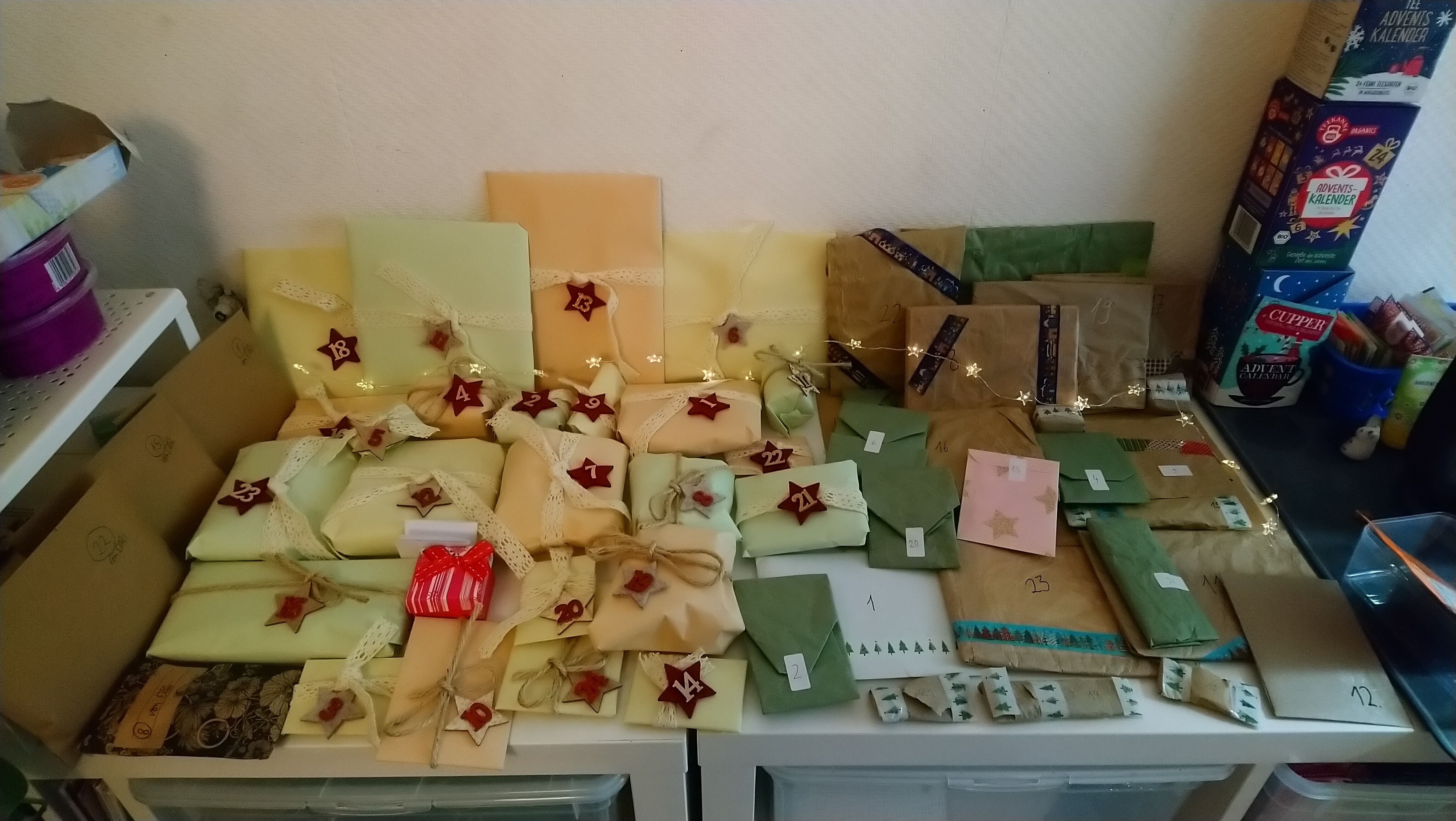 Bei mir ging es tatsächlich weniger ums Basteln, sondern tatsächlich mehr um den finanziellen Inhalt. Ich habe mir damals ziemlich viel Mühe für den Kalender meines Wichtelkinds gegeben und da ich nicht gut im Basteln bin hab ich einfach geschaut, dass alles optisch ansprechend verpackt ist. Auch ich war über den 50€. Als ich allerdings meinen eigenen ausgepackt habe, hatte ich zunehmend das Gefühl meinem Wichtelkind nicht genug gegeben zu haben. Ich weiß es ist kein Wettbewerb, wer mehr ausgibt und zu keinem Zeitpunkt hatte ich das Gefühl, dass mein Wichtelkind unzufrieden war. Meine Arbeit am Kalender hat sich somit ausgezahlt. Realistisch betrachtet sind meine Gefühle eine schlechte bzw. schlechtere Leistung vollbracht zu haben also Unsinn, aber ich fühle mich trotzdem so, als ob ich mehr hätte liefern müssen.
