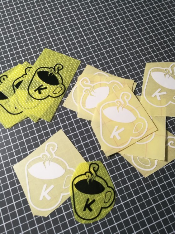 Ich biete auch individuelle Aufkleber oder Bügelfolien an. Wobei ich bei den Bügelfolien keine Kleidung nehmen würde, da es am besten hält, wenn es unter hohen Druck mit einer Presse aufgetragen wird. Ansonsten kann sich das Motiv bei dünnen Konturen wieder lösen beim Waschen. Man könnte aber damit ideal Namenszüge auf Federtaschen, Stifterollen oder Stoffbeutel bügeln.