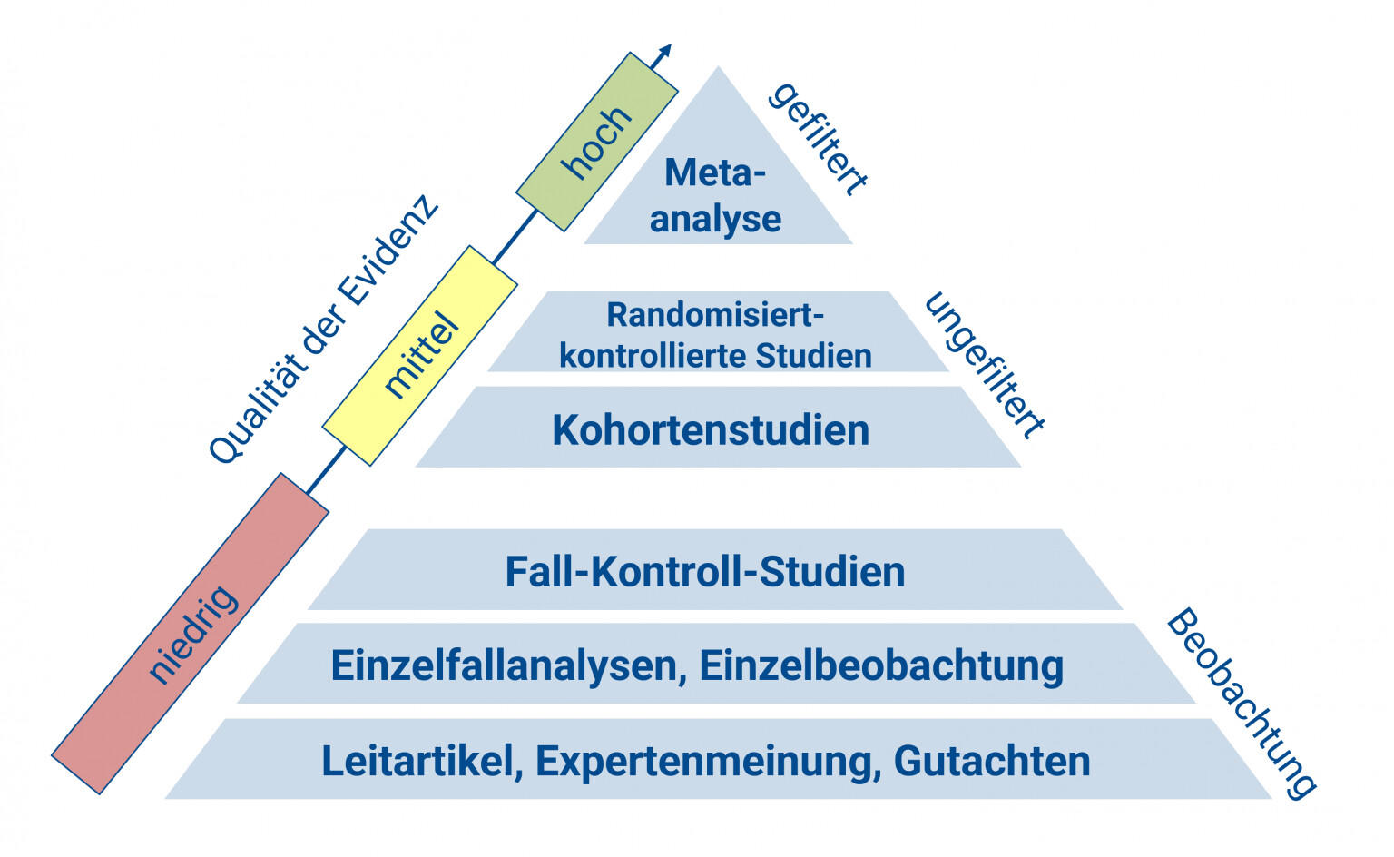 Die Qualität der neuen Erkenntnis im Sinne von “beschreibt das am Nähesten die Wahrheit?” staffelt sich. Oma Erna hat erzählt wenn sie Oliven isst, bekommt sie Durchfall ist z.B. nichtmal in der Pyramide dargestellt, weil das eine Anekdote ist ohne viel drumdum zu fragen.